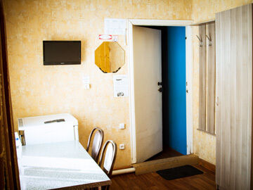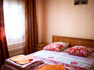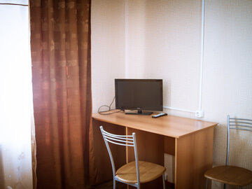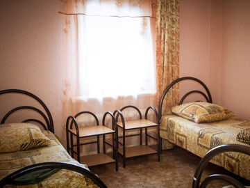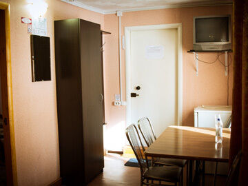 Место в 5-ти или 3-местном номере "эконом" с удобствами: 1,5-спальная кровать, душ + санузел раздельный, стол, стулья, ТВ.