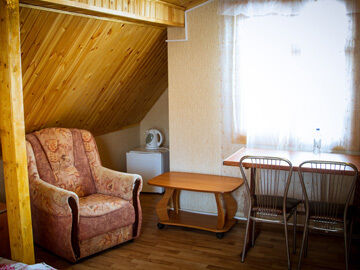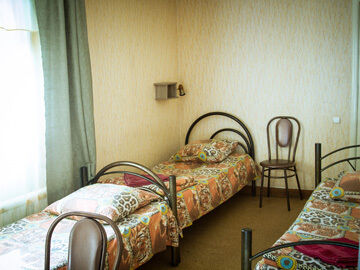 Трехкомнатный номер, 1,5-спальные кровати, душ, с/у раздельный, стол, стулья, ТВ.