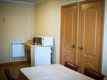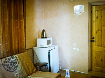 Однокомнатный номер, 2-спальная кровать, душ, с/у совмещенный, стол, стулья, ТВ, холодильник, чайник.