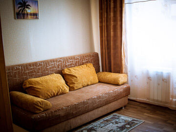 Двухкомнатный номер: спальня, холл с мягкой зоной, 2-спальная кровать, диван, душ, с/у раздельный, стол, стулья, ТВ, холодильник, СВЧ-печь, чайник, фен, кондиционер.