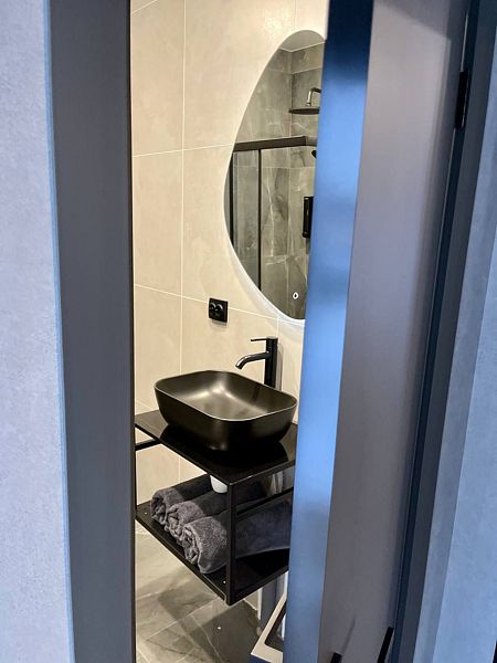 Дом оборудован современными удобствами, такими как Wi-Fi, колонка, smart-TV и кондиционер. Теплый пол обеспечит вам тепло и уют в прохладные вечера. При заезде вам предоставят полотенца и постельное белье.