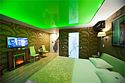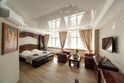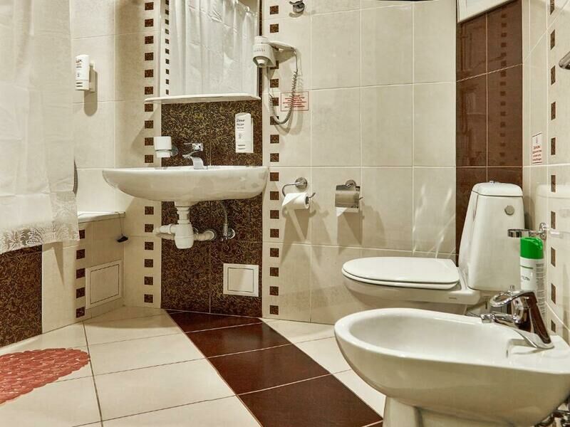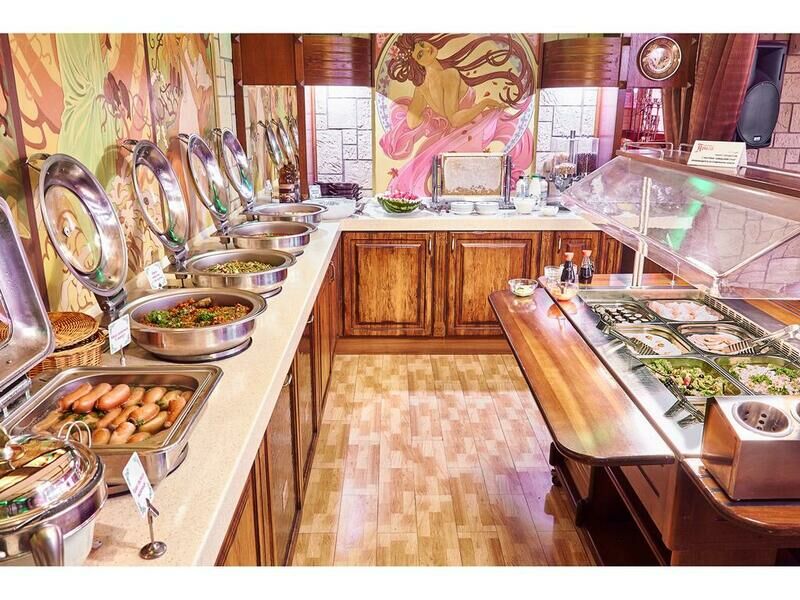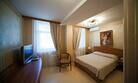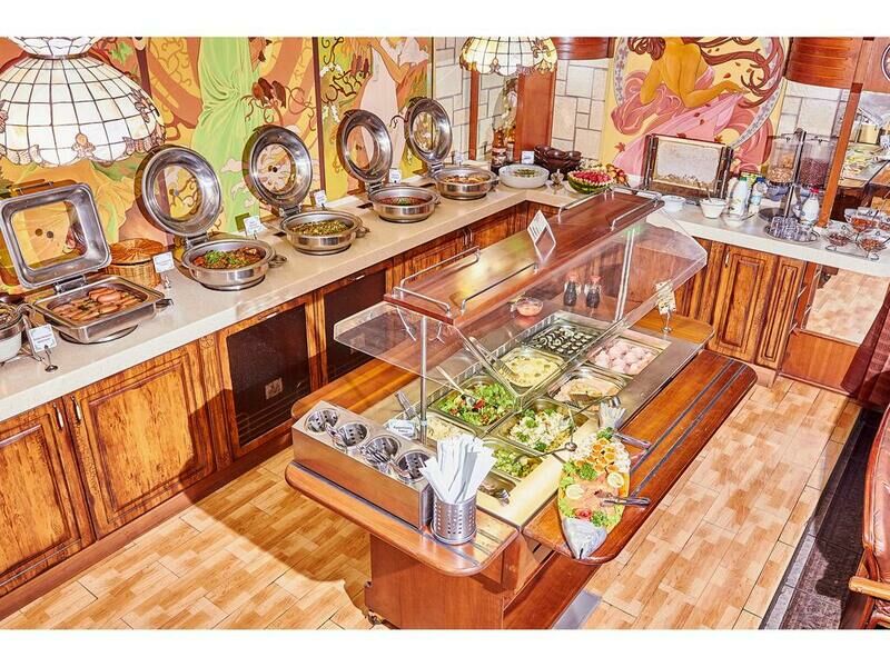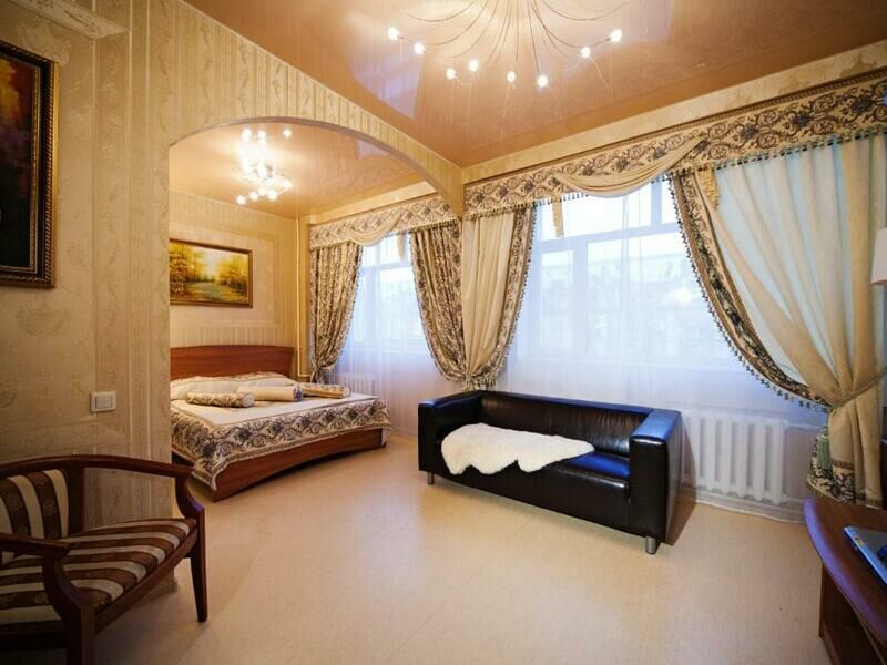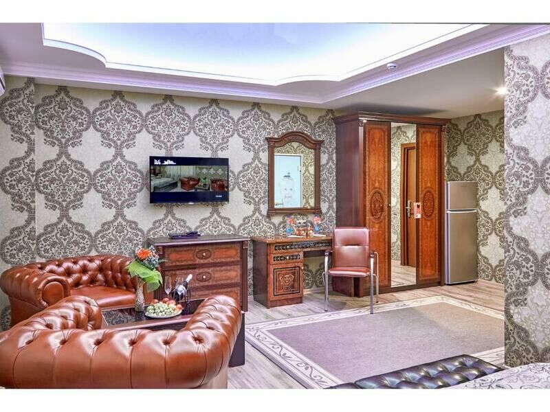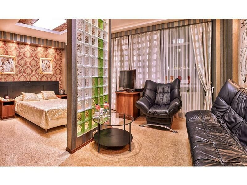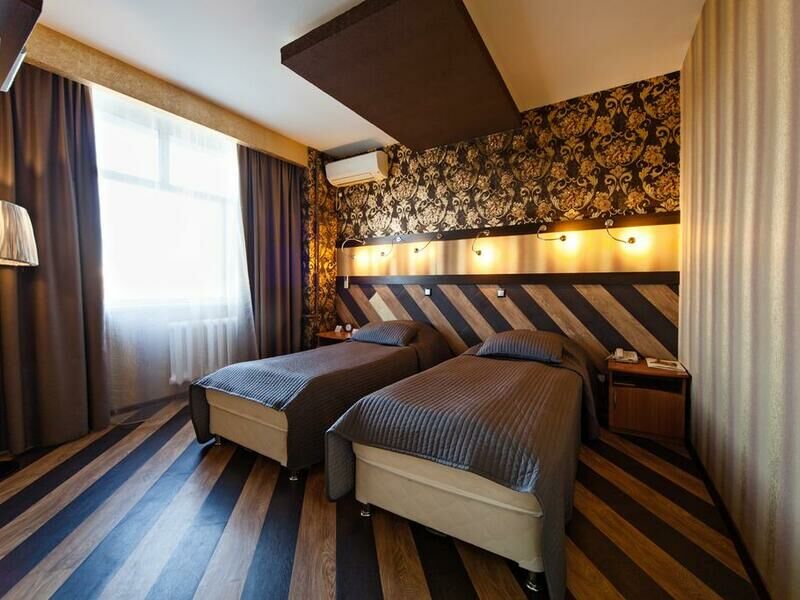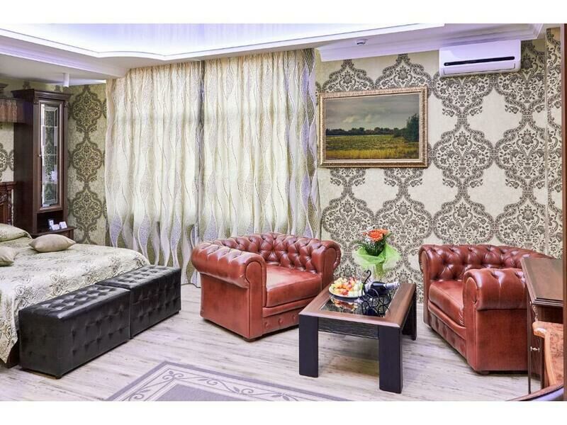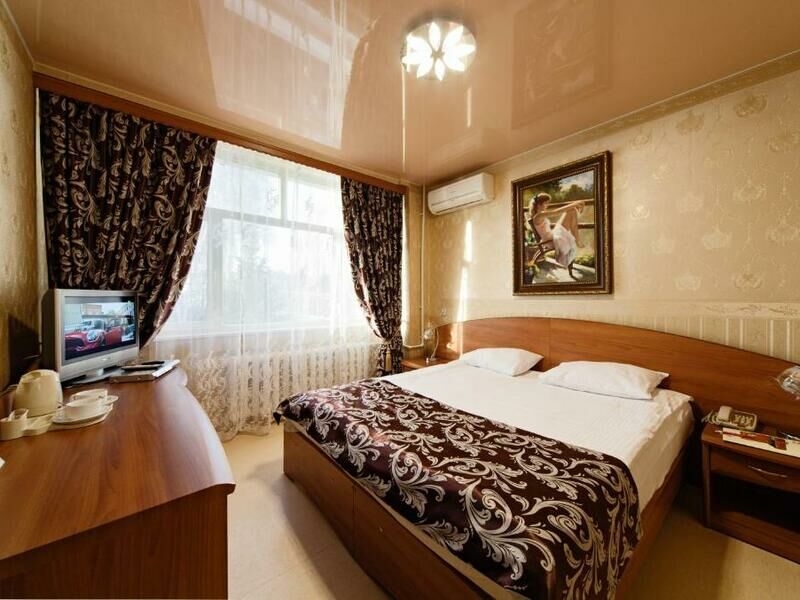5-ти этажное здание отеля с рестораном включает в себя 2-х местные номера категории Стандарт, Комфорт и Люкс. Номера с классическими интерьерами оснащены кондиционером, ЖК-телевизором, холодильником, электрочайником, санузлом с ванной или душем. Некоторые номера Люкс оборудованы собственной сауной и камином.