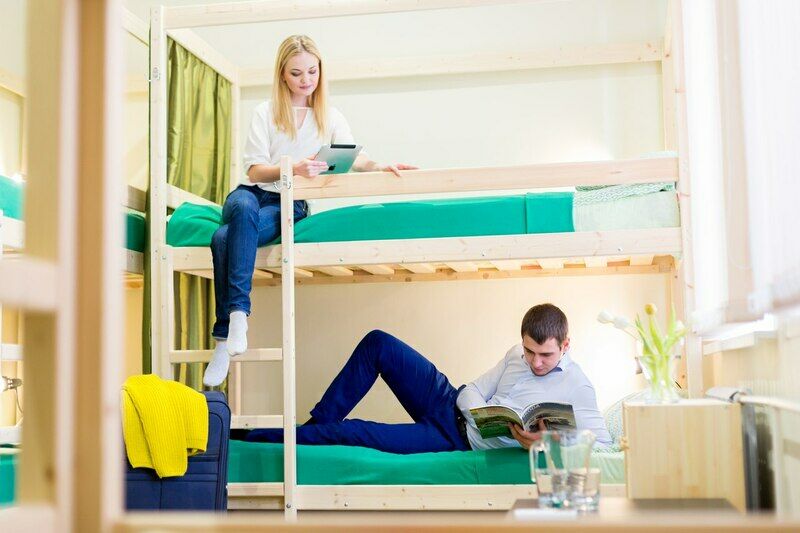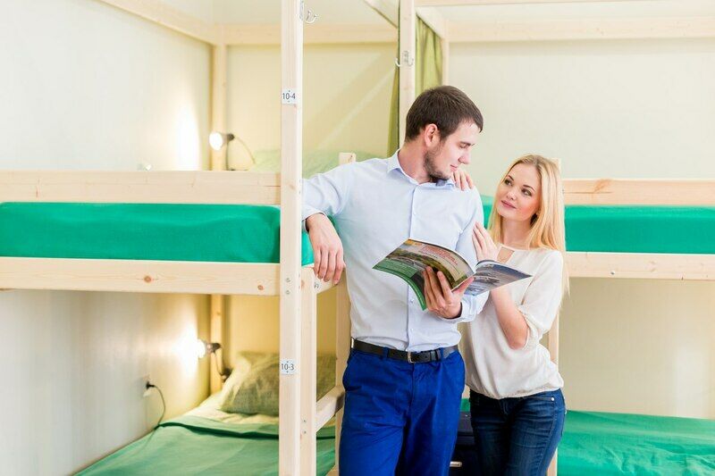 Спальные места - икея. Чисто, цивильно, вай-фай присутствует, в шаговой доступности супермаркеты с едой. Располагается в жилом доме по этому наличие горячей воды постоянное. Цены на декабрь 2016 года от 375р. -
