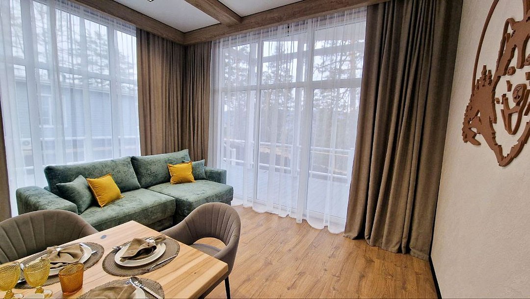 - Бесплатное посещение локаций парка по одному разу за период проживания: контактная ферма «Деревенька», вольер с маламутами и хаски и другие активности (в зависимости от сезона перечень услуг может быть изменён).