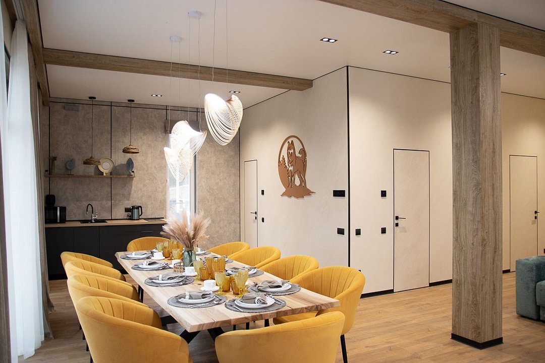 Люксовые дома с дизайнерским интерьером в скандинавском стиле, гармонично и бережно вписанные в первозданную природу и имеющие невероятный вид на Жигулевские горы и национальный парк «Самарская Лука». Дома рассчитаны на размещение больших компаний или семьей. Каждый дом оборудован всем необходимым для создания атмосферы абсолютного комфорта. Всего на территории парка два дома. Оба дома посвящены собакам с которых и началась история экопарка: Чара и Байкал. Максимальная вместимость - 10 чел. Стандартная конфигурация кроватей: двуспальные кровати в двух спальных комнатах; 2 раздельные односпальные в одной спальной комнате. Если вам необходимо изменение конфигурации кроватей под ваше размещение, укажите нужную в комментариях к бронированию.Услуги и удобства