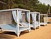 - Отдельные большие шезлонги-бунгало с мягким матрасом. Можно закрыться от солнца шторами. Аренда бунгало оплачивается отдельно у стойки администратора — 500 ₽/час.
