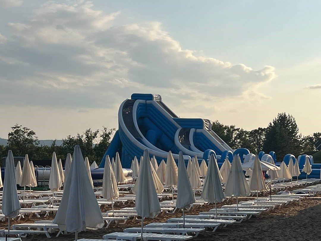 - 3 бассейна для купания: глубиной 1,3 метра, 80 см (аттракцион) и для самых маленьких. Автоматический подогрев воды до 24°C обеспечивает комфортное купание в любую погоду.