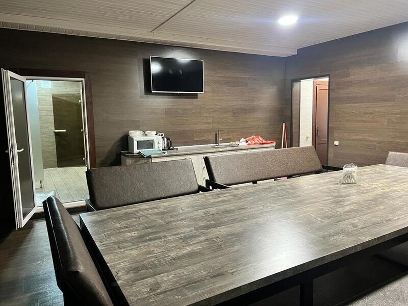 По предварительному заказу можно воспользоваться баней, которая вмещает до 16 человек, но оптимально — 6.