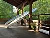 Для детей — игровая площадка с горками и лазалками.