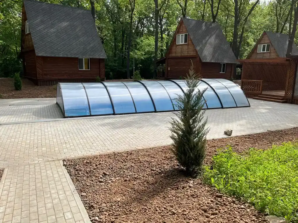 На территории есть стационарные взрослый и детский бассейны с подогревом.