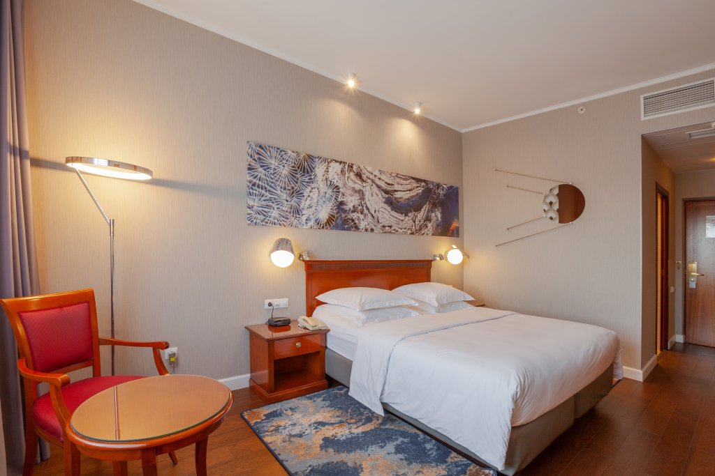 Отель располагает 184 номерами. Гостям предоставляются: кровать с ортопедическим матрасом, ванная комната со всеми необходимыми принадлежностями, телевизор с плоским экраном, беспроводной доступ в Интернет, мини-бар, чайник с наборами чая и кофе на выбор, рабочее место.