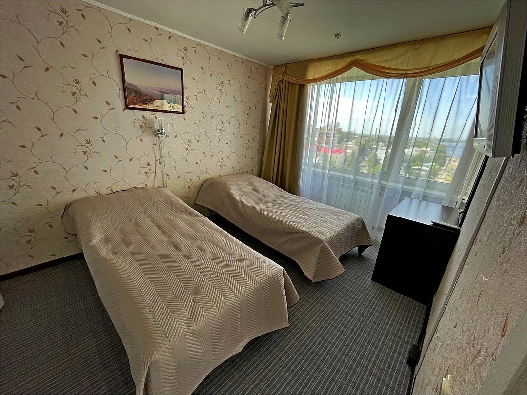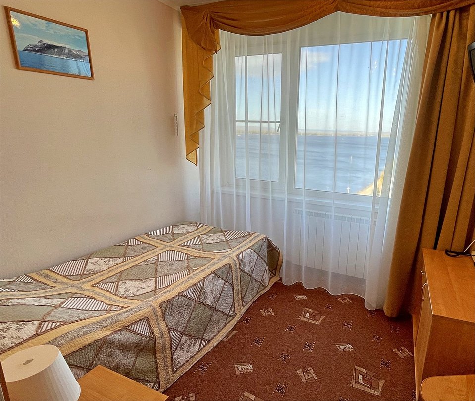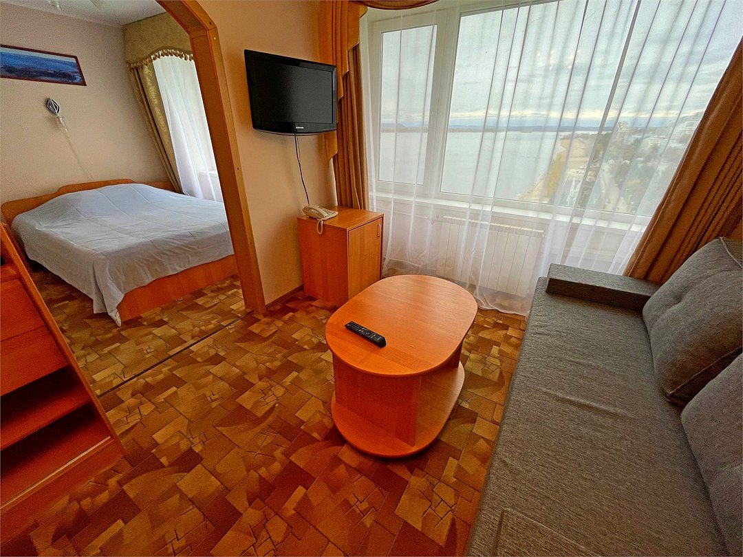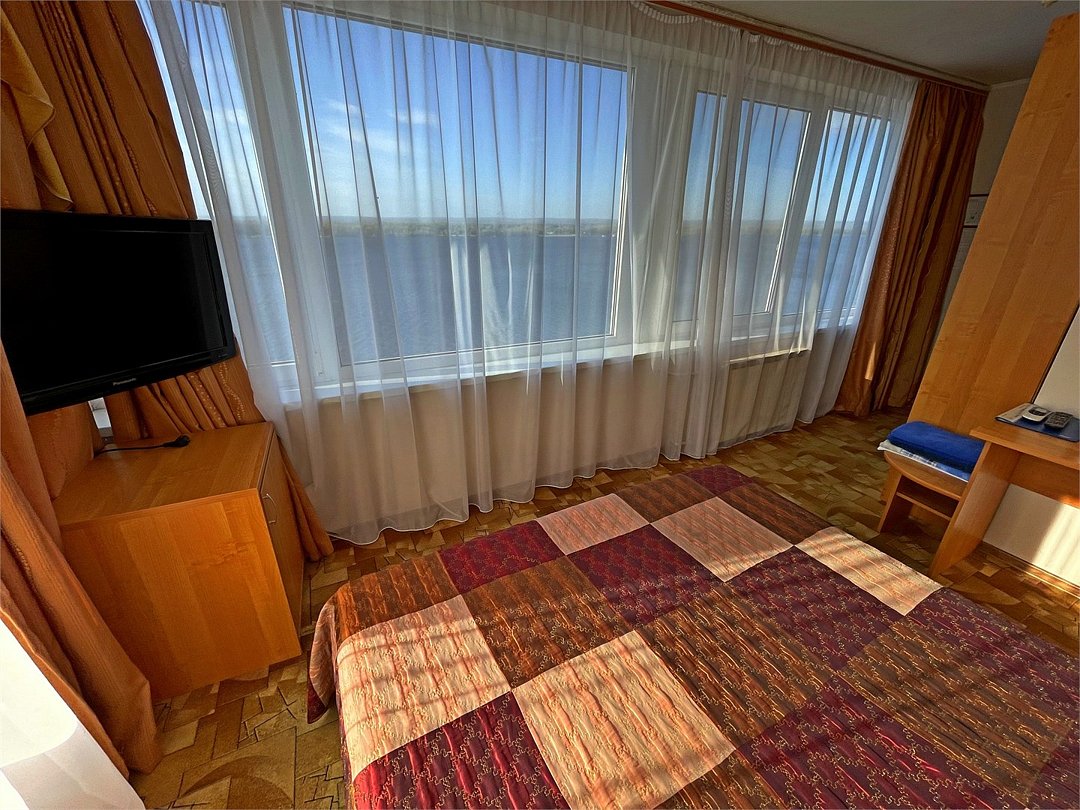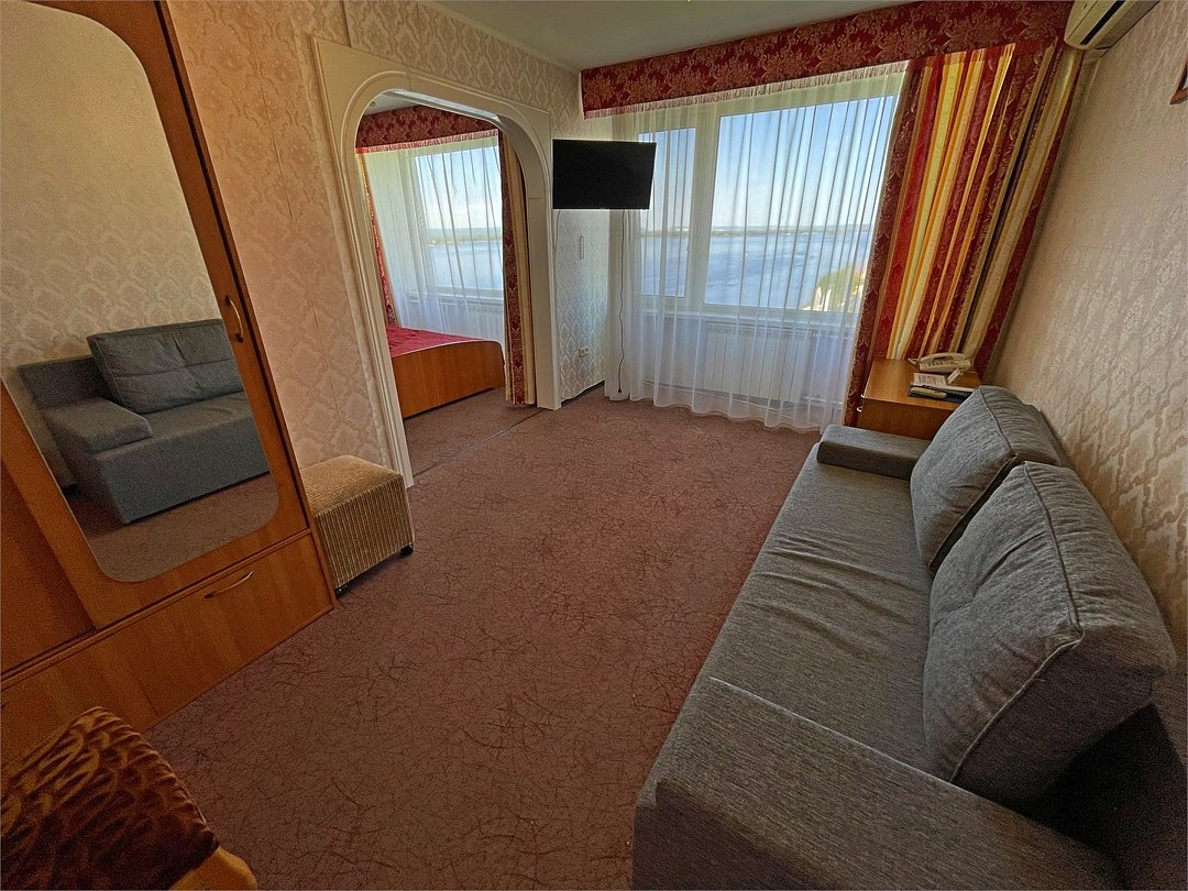 Двухкомнатный номер - гостиная и спальня. В спальне две раздельные кровати, в гостиной диван. Ванная комната с ванной. ПАНОРАМНЫЙ ВИД НА ВОЛГУ.Услуги и удобства