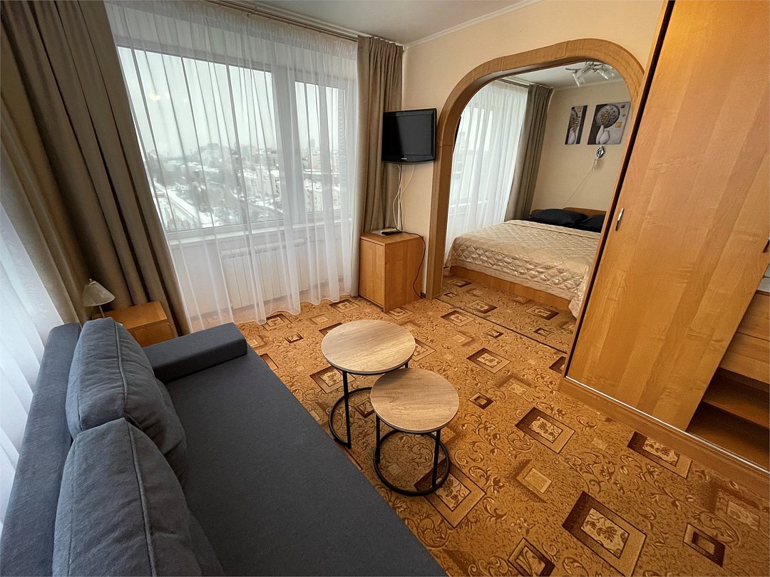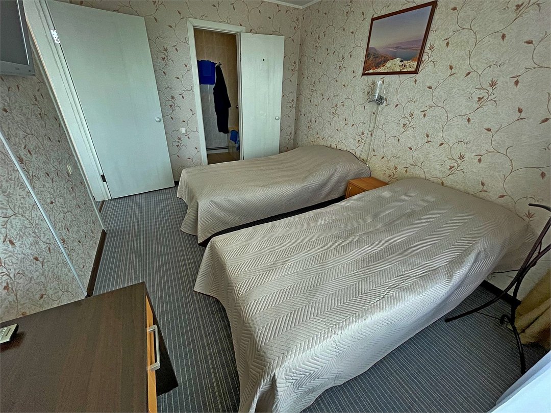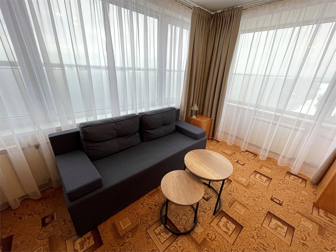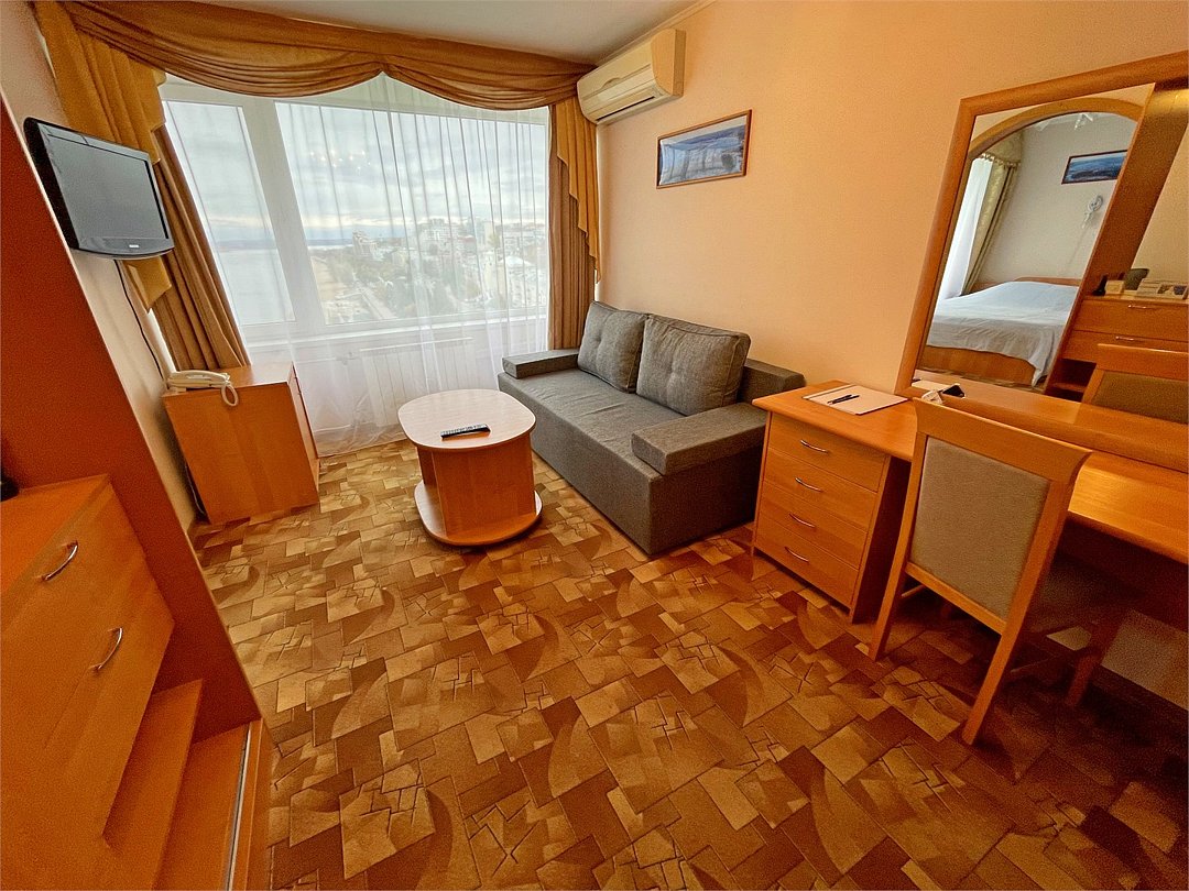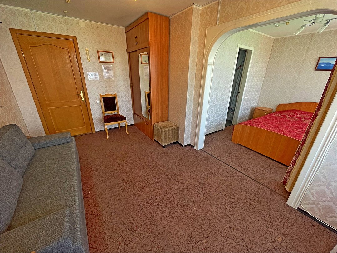 Комфортный номер, состоящий из двух комнат - гостиной и спальни. В спальне - две раздельные кровати , в гостиной - диван-кровать. Ванная комната с ванной.Услуги и удобства