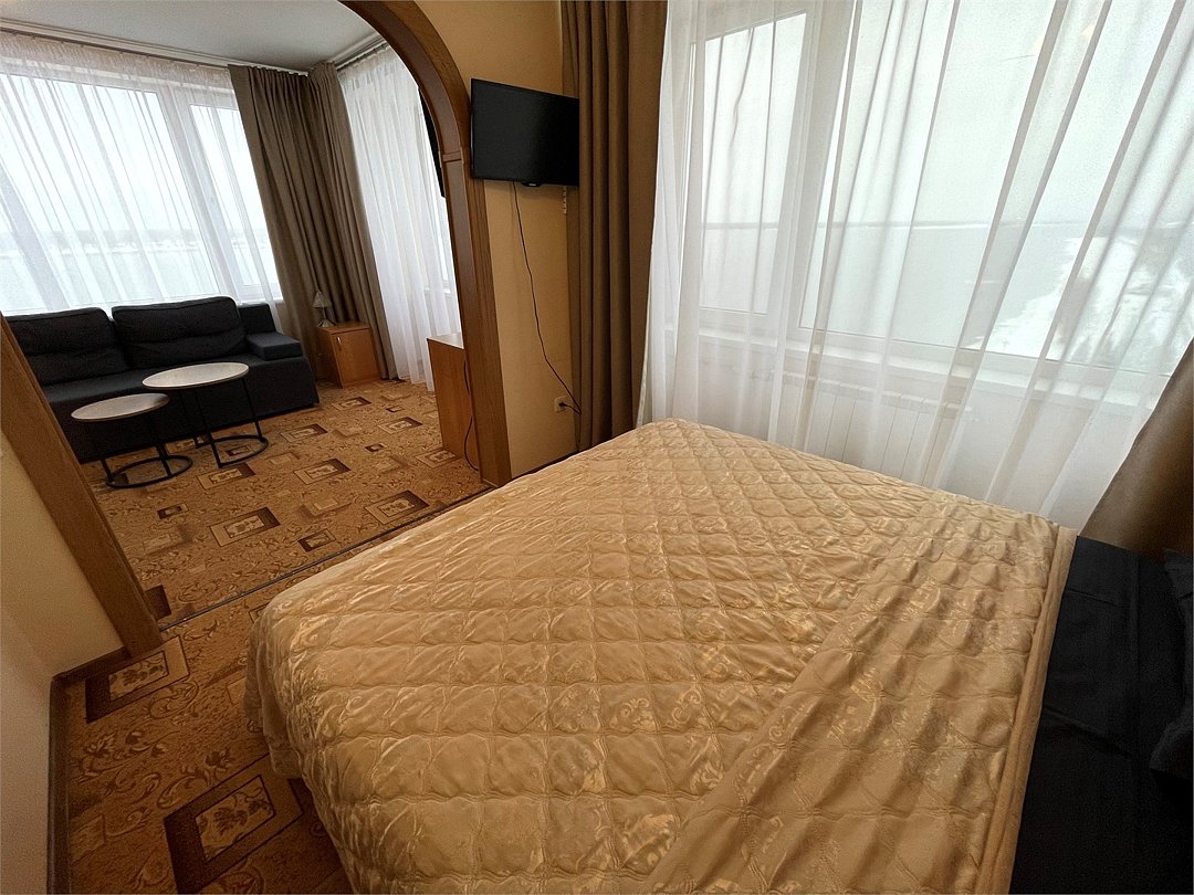 Комфортный номер, разделенный на зоны гостиной и спальни. Просторная ванная комната с ванной.Услуги и удобства