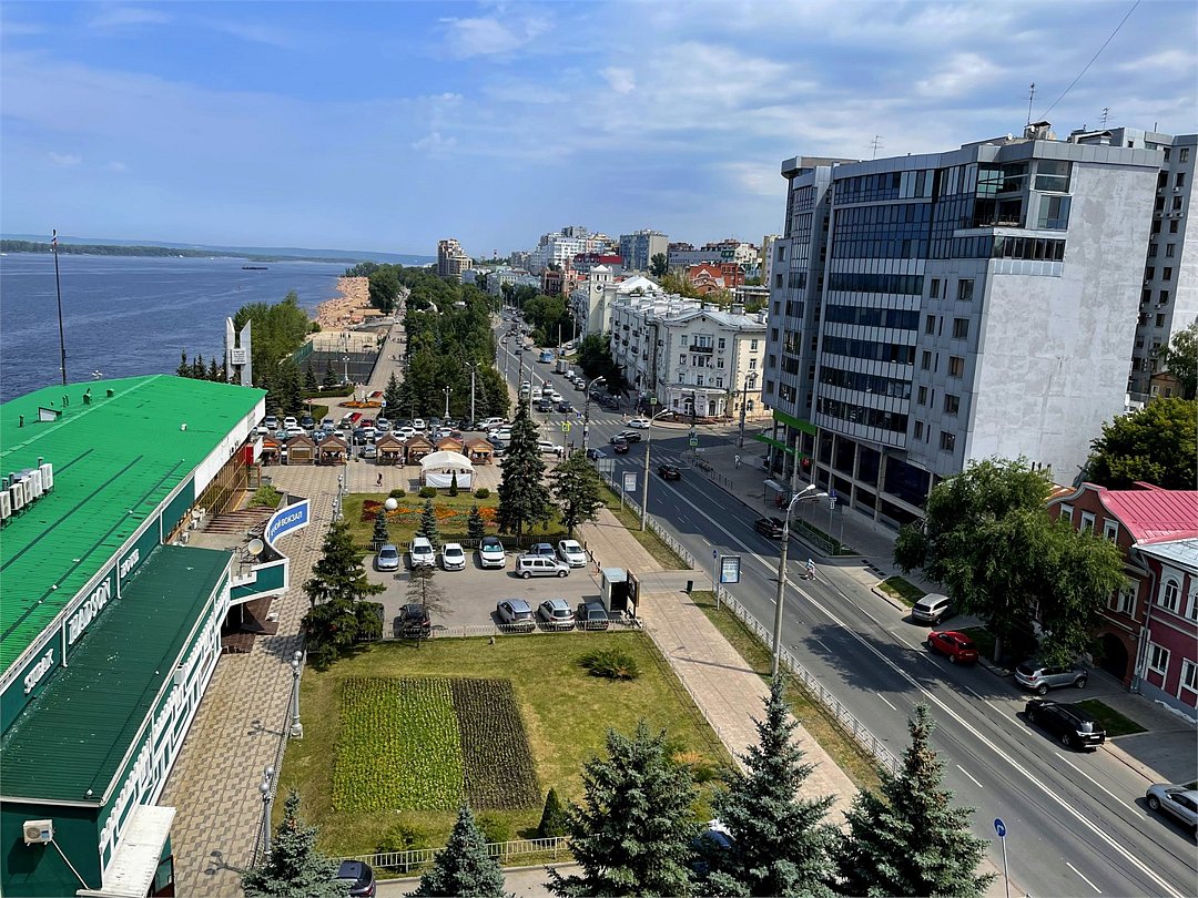 Номер с одной двуспальной кроватью и панорамным видом на Волгу и город СамаруУслуги и удобства