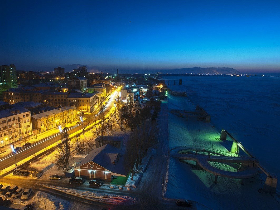 На фото вид из окна вечером