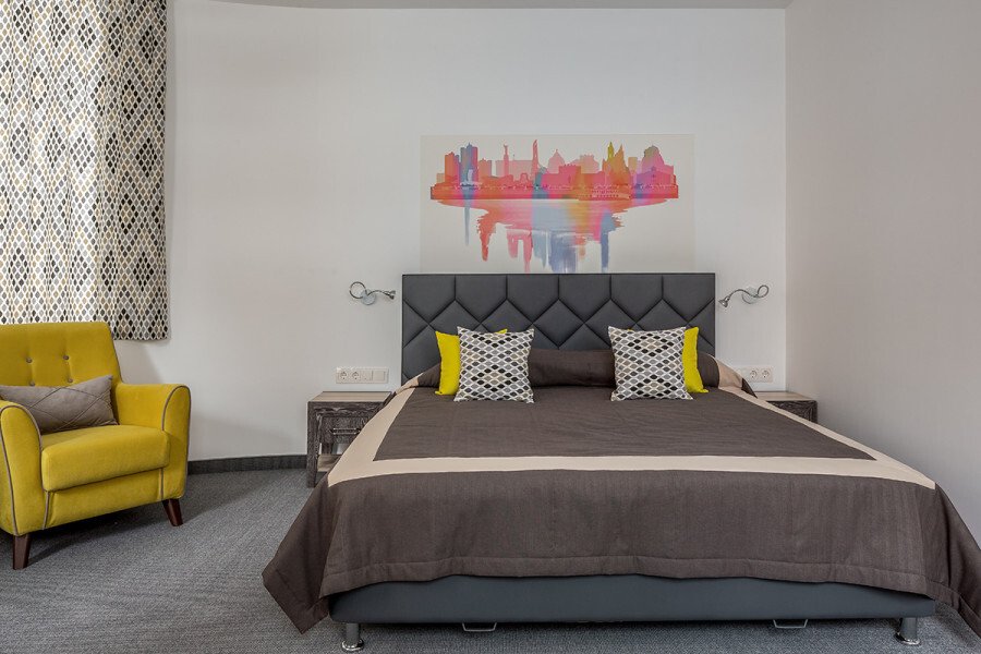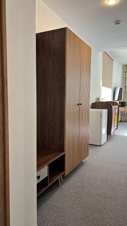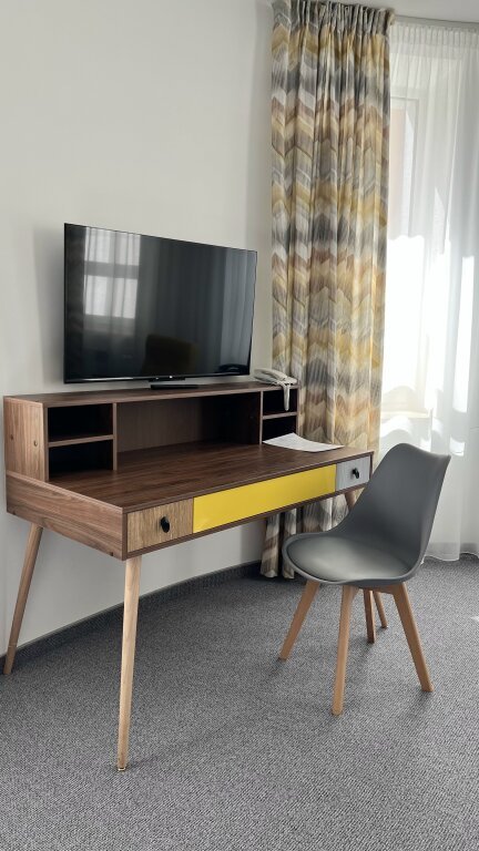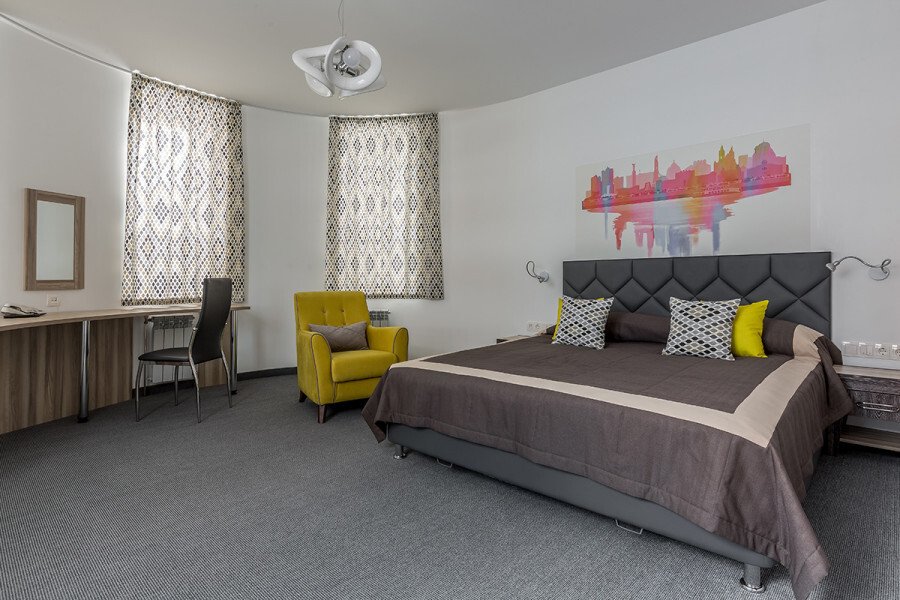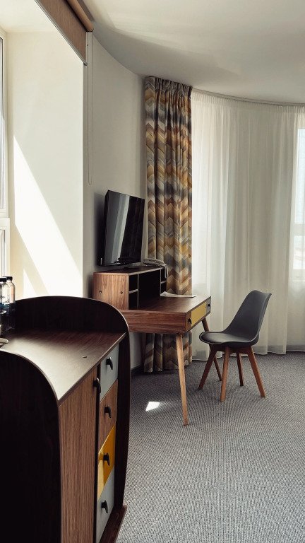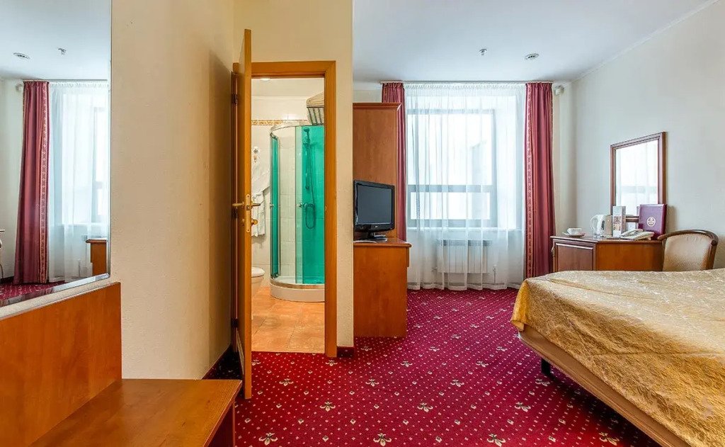 Номер уютно обставлен и оснащён необходимым, чтобы отдохнуть после долгого и насыщенного дня. Имеются телевизор. Перечисленные услуги есть не во всех номерах.