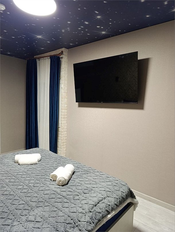 Апартаменты "Вип" с кроватью "King Size"идеально подойдут для молодоженов или романтического вечера. Украсим апартаменты под ваше мероприятие. Апартаменты оснащены: холодильник двухкамерный, диван, шкаф, ванная комната, гигиенические принадлежности, кондиционер, фен, чайник, варочная панель, посуда, стол, стулья, прикроватные тумбы, Smart TV. Окунись в мир роскоши и комфорта.Услуги и удобства