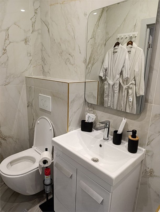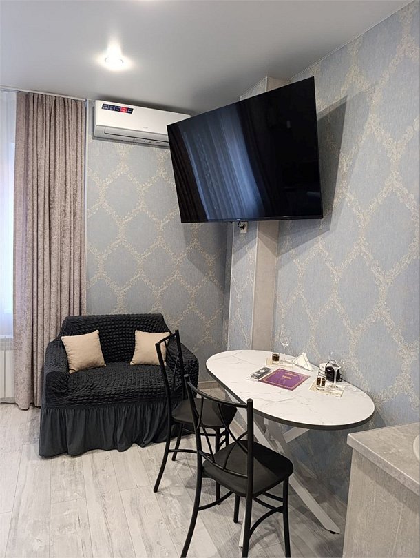 Апартаменты в классическом изысканном стиле с кроватью "King Size" кухней и душевой. Номер оснащен: кондиционер, Smart TV", холодильник двухкамерный, варочная панель, посуда, чайник, фен, халаты, косметические средства. Окунись в мир комфорта и роскоши.Услуги и удобства