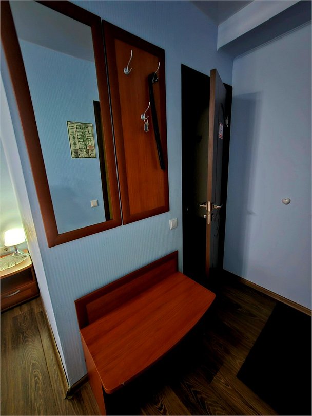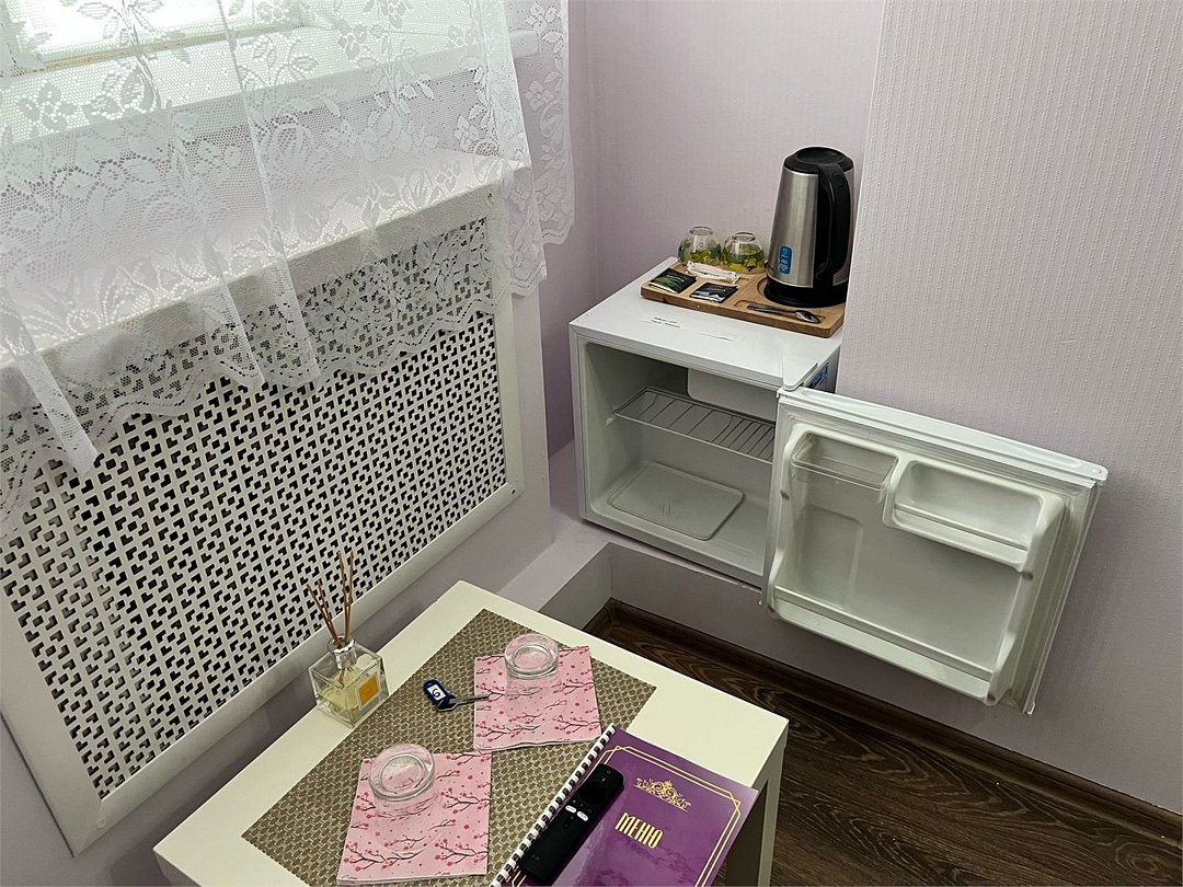 телевизор, Wi-Fi, телефон, холодильник, кондиционер, светильник, фен, система безопасности, двуспальная кровать, односпальная кровать, вешалки, журнальный столик, зеркало, чайный набор, информационная карта, меню, чайник, отопление, вид во двор, москитная сетка, номер для некурящих, пуфик, уборка номера, услуги прачечной (платно), вешалки-плечики, зеркало в полный рост, можно с питомцамиВ гостиничном номере