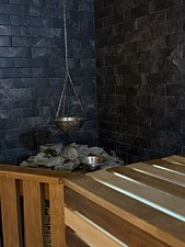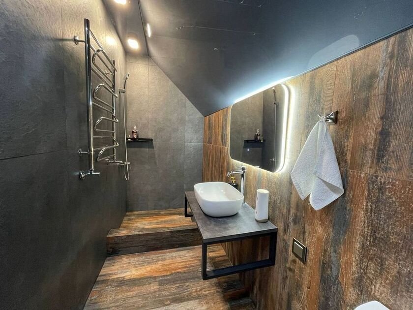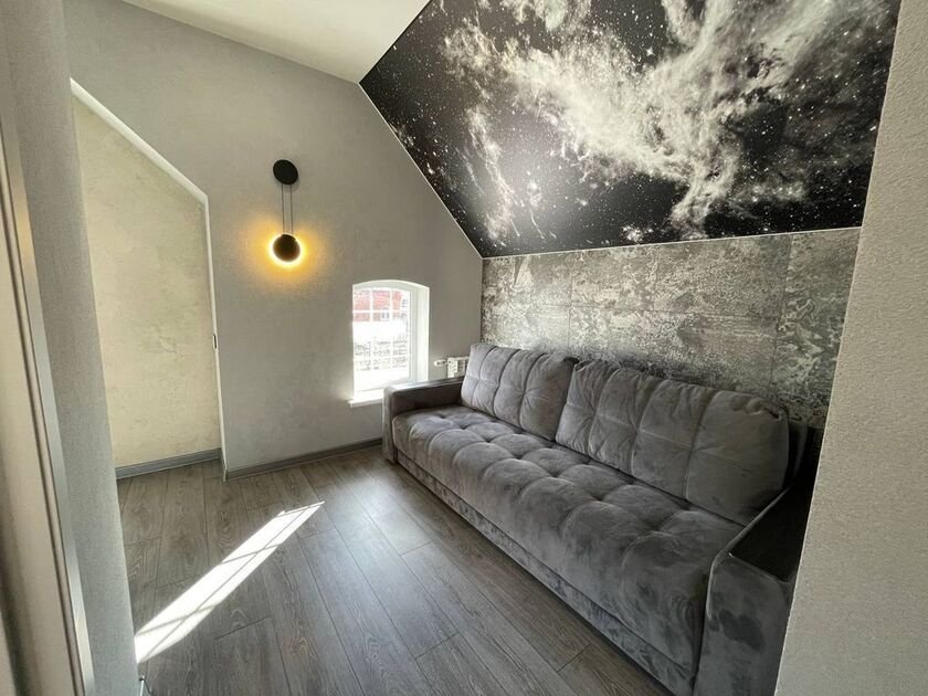 На первом этаже таунхауса располагается уютная сауна, где гости смогут снять усталость и восстановить силы. Просторная парная создает атмосферу полного расслабления после насыщенного дня.