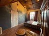 На первом этаже расположены гостиная, кухня, бассейн и сауна. Есть санузел, душ (такого вы нигде больше не увидите!) и проходная зона с диваном. На втором этаже — совмещенный санузел с душем и две роскошные спальни.