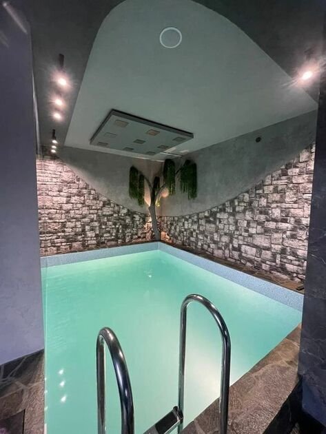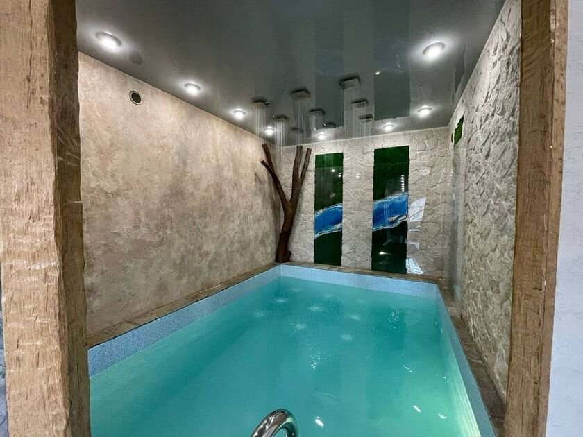 Этот эксклюзивный коттедж создан специально для вашего комфорта и отдыха: природные камни, индийская плитка, настоящее дерево прямо в бассейне, эффект дождя, скальные элементы в душевой зоне, гималайская соль и волшебная вода с гармоничным pH-фактором. Вода проходит многоступенчатую фильтрацию — уголь, смола, соль, ультрафиолет. Ваша кожа скажет вам спасибо!