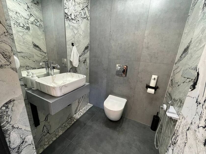 Инфраструктура: бассейн, душНа первом этаже таунхауса располагается уютная сауна, где гости смогут снять усталость и восстановить силы. Просторная парная создает атмосферу полного расслабления после насыщенного дня.