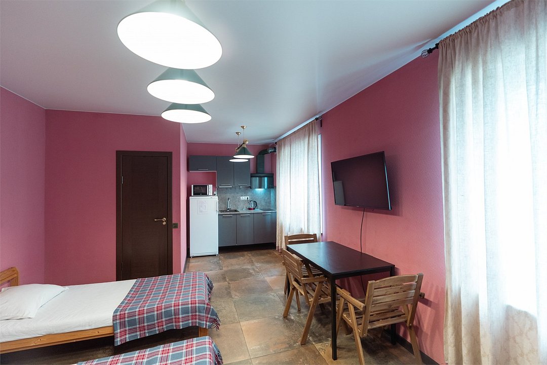 интерактивное телевидение, Wi-Fi, интернет, холодильник, настольные лампы, фен, микроволновая печь, утюг, обогреватель, ванная комната, душевая кабина, тапочки, гигиенические средства, двуспальная кровать, гладильная доска, ортопедический матрас, диван, стулья, шкаф для одежды, вешалки, письменный стол, обеденный стол, зеркало, мебельный гарнитур, две комнаты, звуконепроницаемые стены и окна, набор посуды, чайник, унитаз, раковина, мягкая мебель, питьевая вода, обеденная зона, отопление, душ, плиточное покрытие, кресло, вид во двор, ламинат, кухонная посуда, стаканы, столовые приборы, стол, тумба, туалетные средства, сушилка для белья, цифровое тв, диван-кровать, раскладной диван, раскладное кресло, телевизор с плоским экраном, кухонный уголок, москитная сетка, номер для некурящих, кресло-кровать, двуспальный раскладной диван-кровать, межкомнатная дверь, набор для приготовления чая и кофе, услуги прачечной (платно), вешалки-плечики, бутилированная вода, мыло, международная розетка, можно с питомцамиВ гостиничном номере