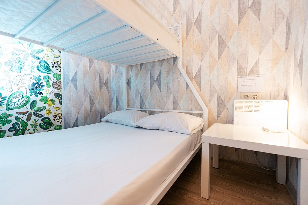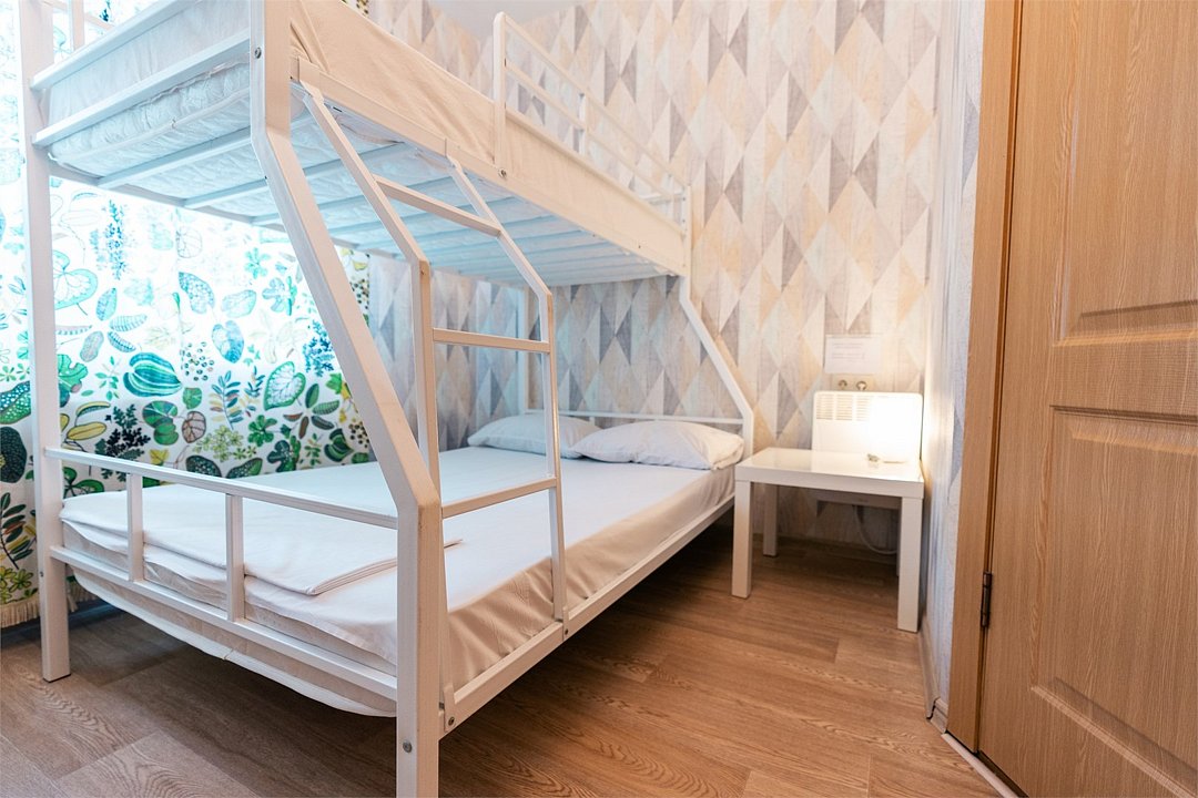 интерактивное телевидение, Wi-Fi, интернет, холодильник, настольные лампы, фен, микроволновая печь, утюг, душевая кабина, санузел, тапочки, гладильная доска, ортопедический матрас, стулья, шкаф для одежды, вешалки, журнальный столик, письменный стол, обеденный стол, зеркало, звуконепроницаемые стены и окна, набор посуды, чайник, унитаз, раковина, питьевая вода, отопление, душ, плиточное покрытие, вид во двор, ламинат, стаканы, столовые приборы, тумба, туалетные средства, сушилка для белья, цифровое тв, телевизор с плоским экраном, кухонный уголок, москитная сетка, номер для некурящих, двухъярусная кровать, набор для приготовления чая и кофе, услуги прачечной (платно), вешалки-плечики, мыло, международная розетка, можно с питомцамиВ гостиничном номере