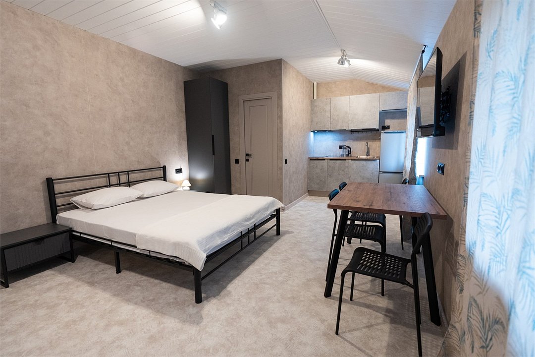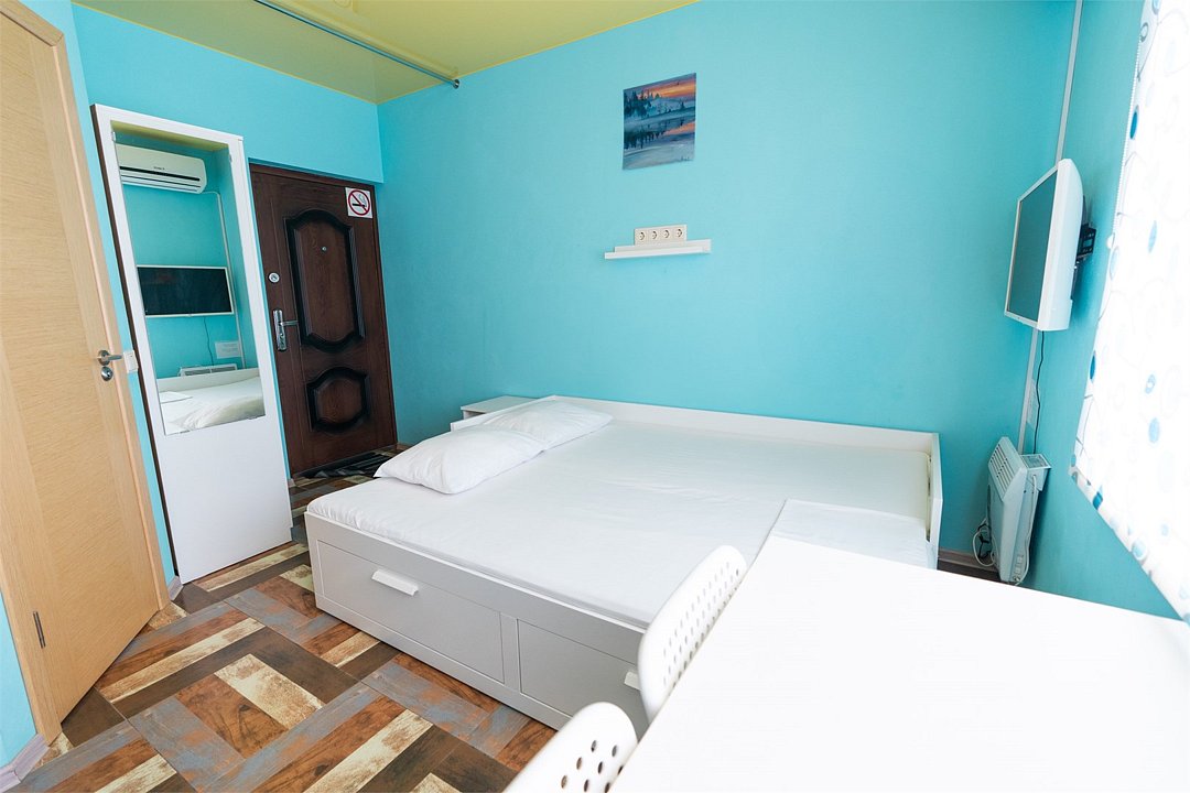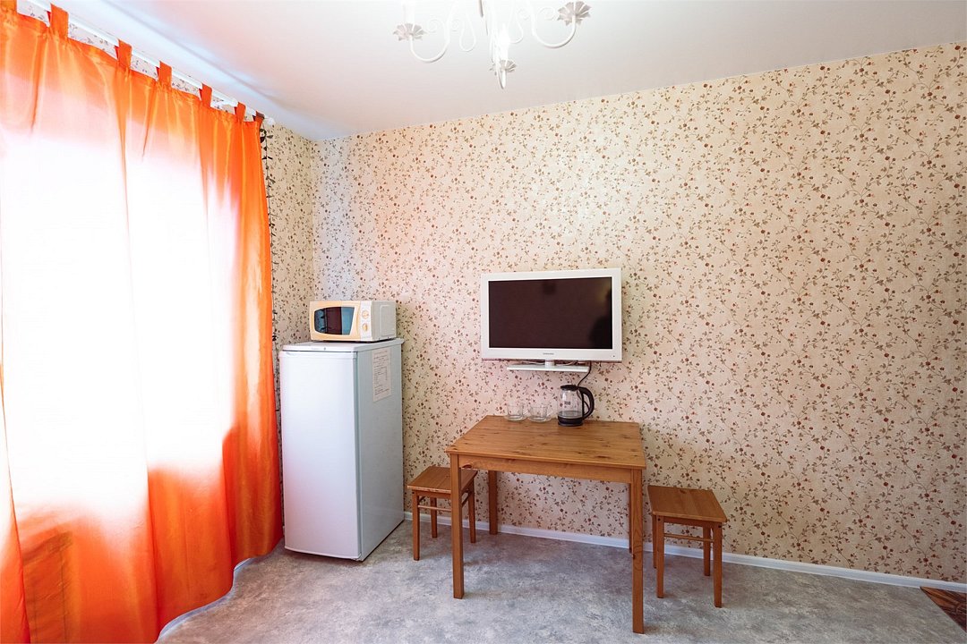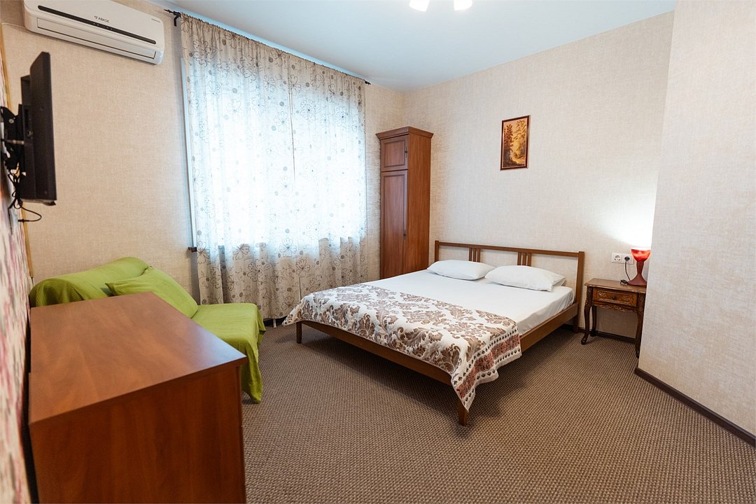 интерактивное телевидение, Wi-Fi, интернет, холодильник, кондиционер, светильник, фен, микроволновая печь, утюг, ванная комната, душевая кабина, санузел, тапочки, гигиенические средства, двуспальная кровать, гладильная доска, ортопедический матрас, стулья, вешалки, журнальный столик, обеденный стол, зеркало, комод, звуконепроницаемые стены и окна, набор посуды, чайник, унитаз, раковина, питьевая вода, отопление, душ, плиточное покрытие, вид во двор, ламинат, столовые приборы, стол, туалетные средства, сплит-система, сушилка для белья, цифровое тв, телевизор с плоским экраном, кухонный уголок, москитная сетка, номер для некурящих, набор для приготовления чая и кофе, услуги прачечной (платно), вешалки-плечики, мыло, международная розетка, можно с питомцамиВ гостиничном номере