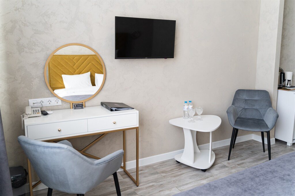 Номер уютно обставлен и оснащён необходимым, чтобы отдохнуть после долгого и насыщенного дня. Имеются телевизор и мини-бар. Перечисленные услуги есть не во всех номерах.