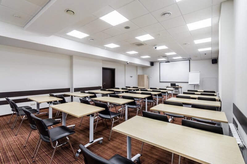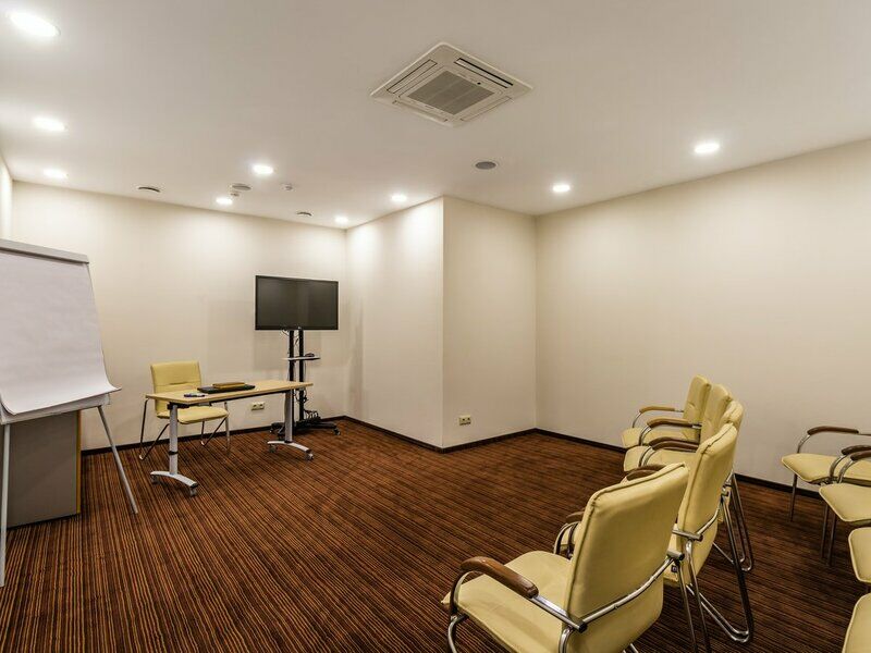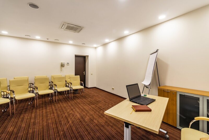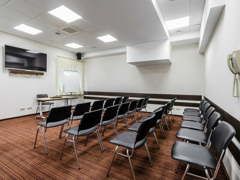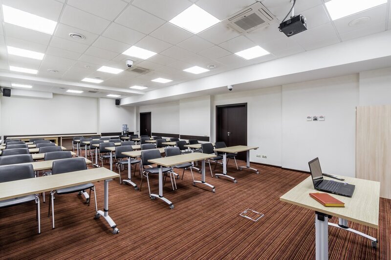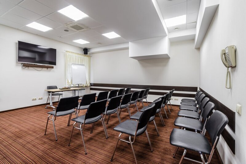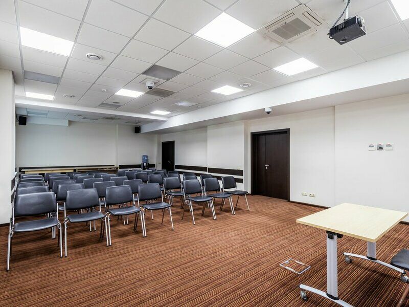 Самый большой конференц-зал, вмещающий до 90 гостей в зависимости от расстановки мебели. Отдайте предпочтение «Москве», когда нужно снять зал для семинара или необходима аренда зала под конференцию. Помещение является идеальным выбором как для масштабных мероприятий, так и небольших собраний, поэтому в нем можно организовать проведение конференций и семинаров, а также использовать зал под тренинг. Место проведения конференции оснащено по последнему слову техники, позволяя вести видеосъемку, а также её трансляцию в другие залы отеля.