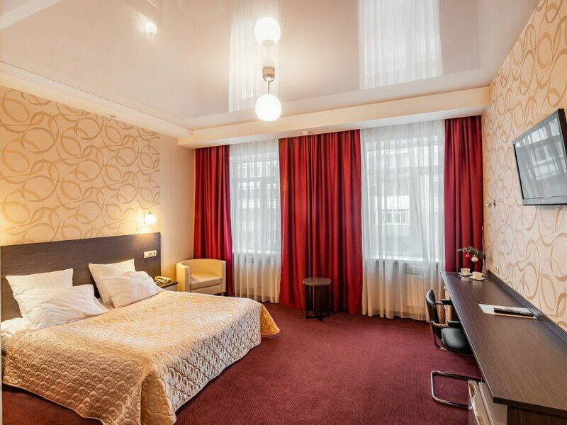 Четырехэтажное здание отеля, оснащенное лифтом, разместилось на первой береговой линии в начале знаменитой Самарской набережной. Жилой фонд, рассчитанный на единовременное размещение более 100 гостей, включает номера категории Стандарт, Комфорт и Люкс. Комнаты хорошо меблированы, есть спальный гарнитур, вместительный шкаф, письменный стол. Каждый номер оснащен санузлом с ванной или душем, необходимой бытовой техникой, кондиционером и набором посуды.