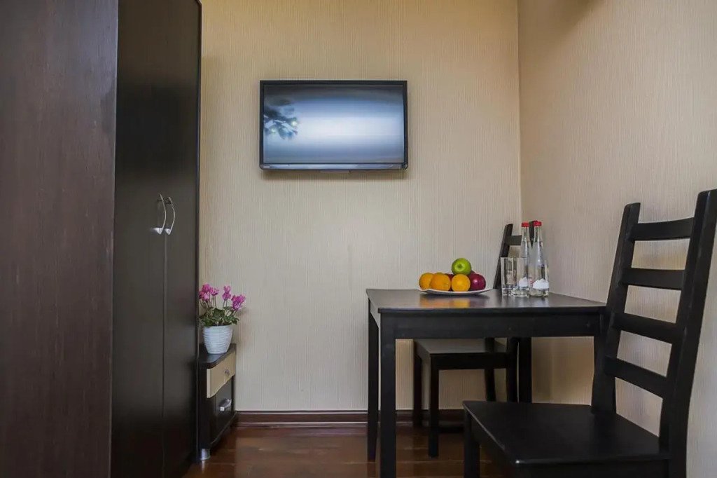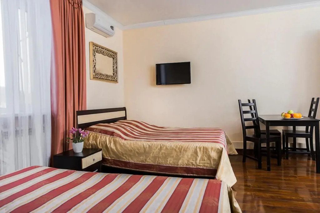 В номере гостей ждут телевизор и халат. Перечисленные услуги есть не во всех номерах.