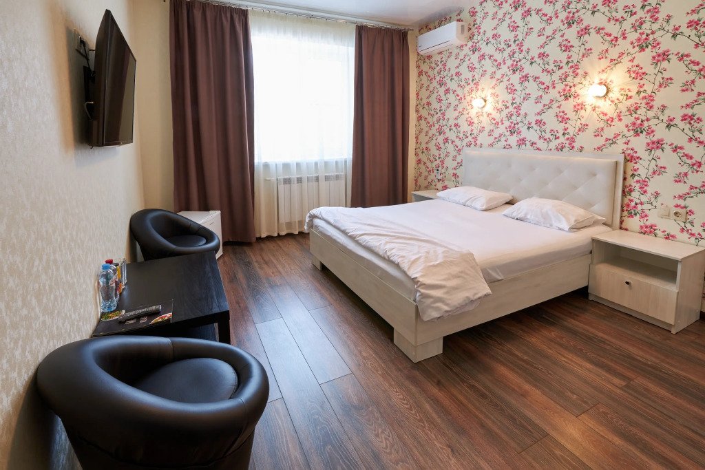 Гостям предоставляются стандартные номера и номера категории «люкс». Оснащение зависит от выбранной категории номера.