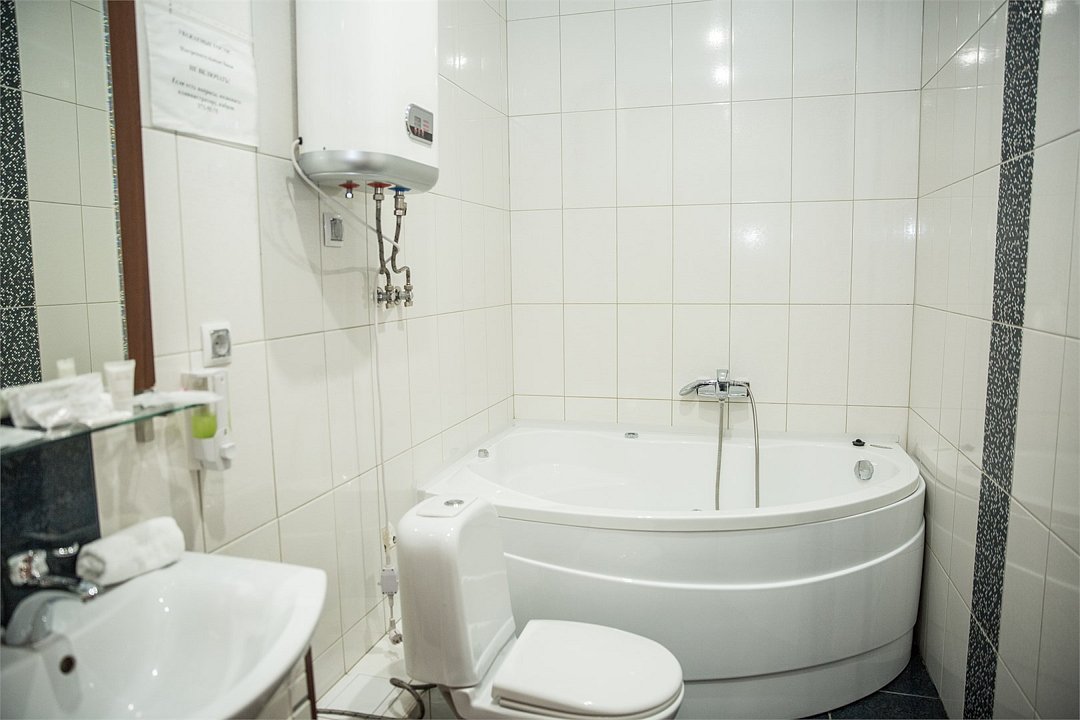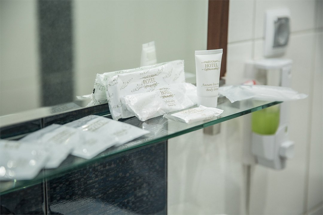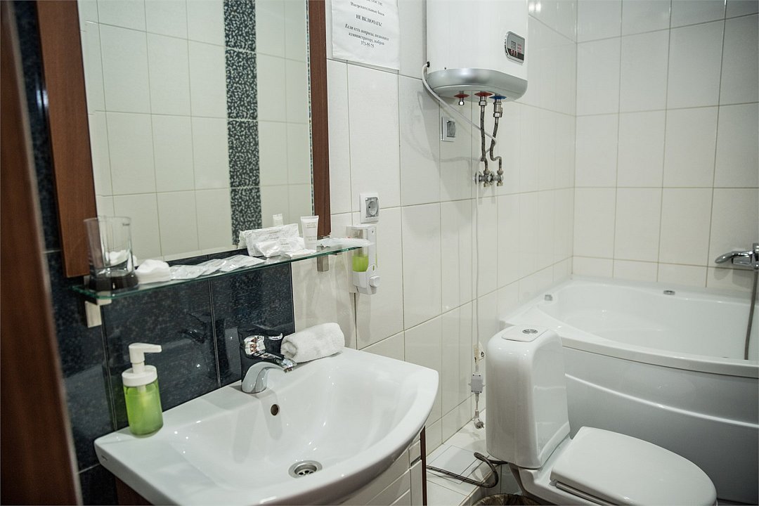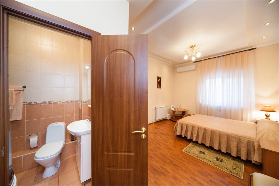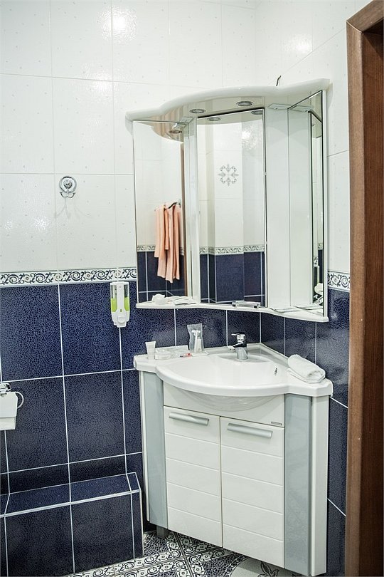 В номере имеется вся необходимая мебель для комфортного проживания двух человек. Вместительный шкаф позволит без труда разместить все Ваши вещи, а удобный рабочий стол – разобраться с любыми незавершенными делами. Несколько вариантов освещения поможет создать нужную атмосферу как для работы, так и для отдыха. В ванной комнате установлена качественная современная сантехника и шкафчики для хранения полезных мелочей.Услуги и удобства