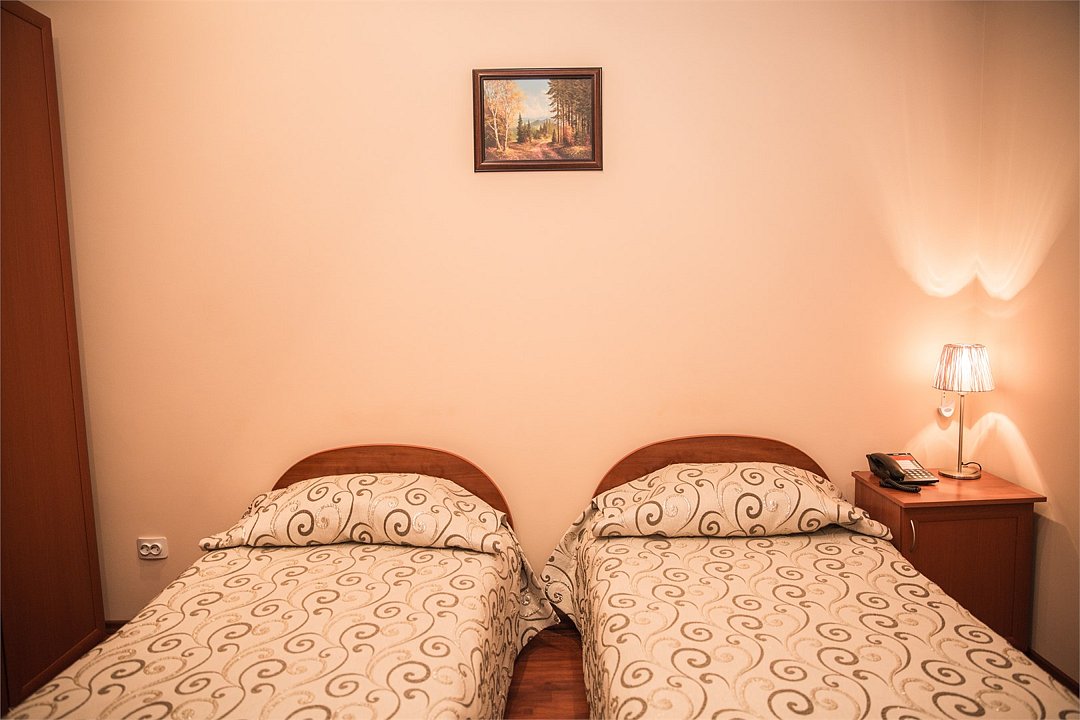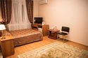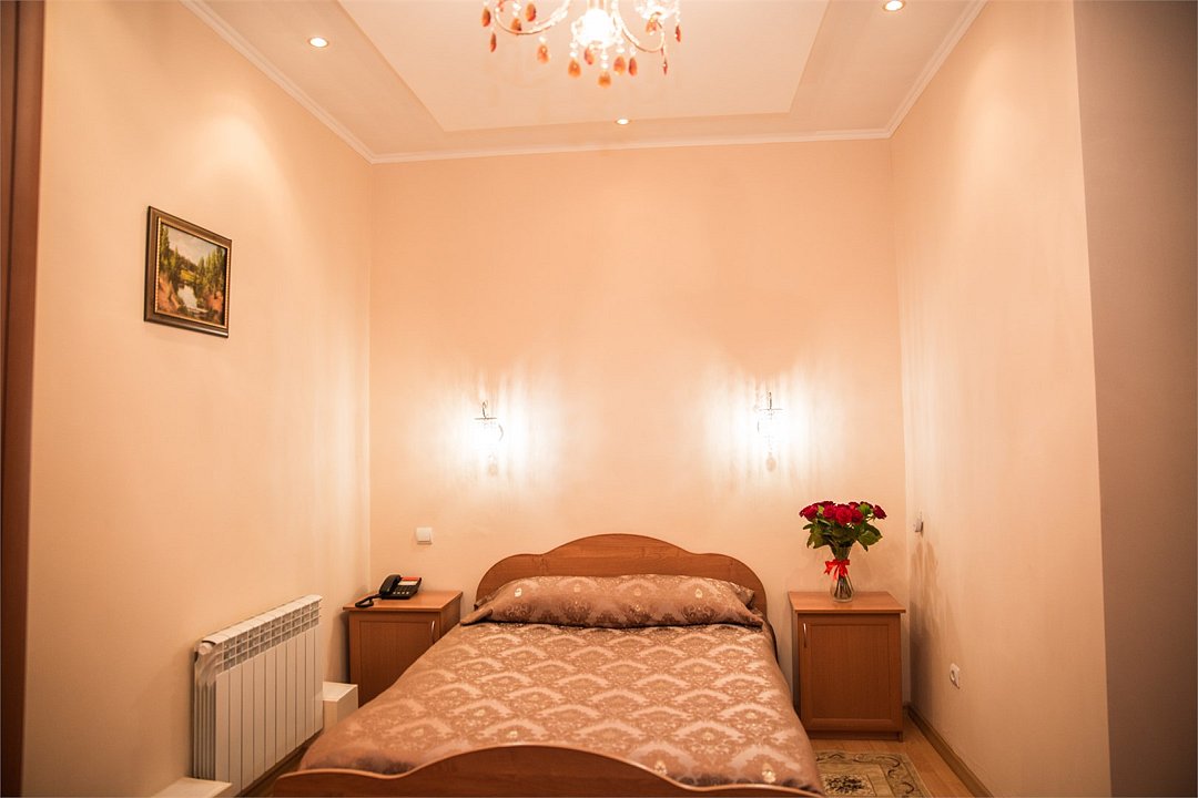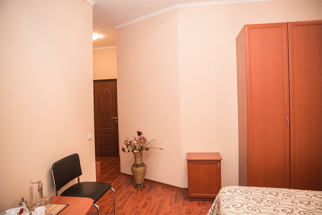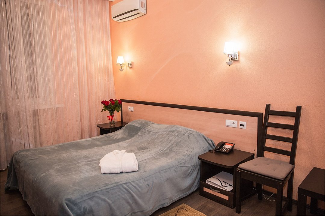 Уютный номер с полутороспальной кроватью для одного человека. В комнате имеются шкаф, тумбочки, рабочий стол и зеркало. В просторной ванной комнате, оборудованной шкафчиками для хранения различных принадлежностей, установлена современная душевая кабина.Услуги и удобства