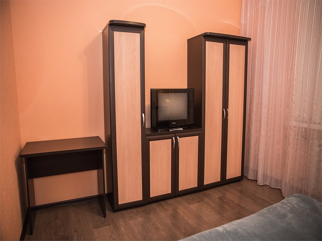Wi-Fi, телефон, холодильник, кондиционер, светильник, фен, утюг, душевая кабина, водонагреватель, полутораспальная кровать, стулья, шкаф для одежды, вешалки, письменный стол, набор посуды, чайник, унитаз, раковина, вид на город, кулер на этаже, высокие потолки, цифровое тв, без питомцевВ номере
