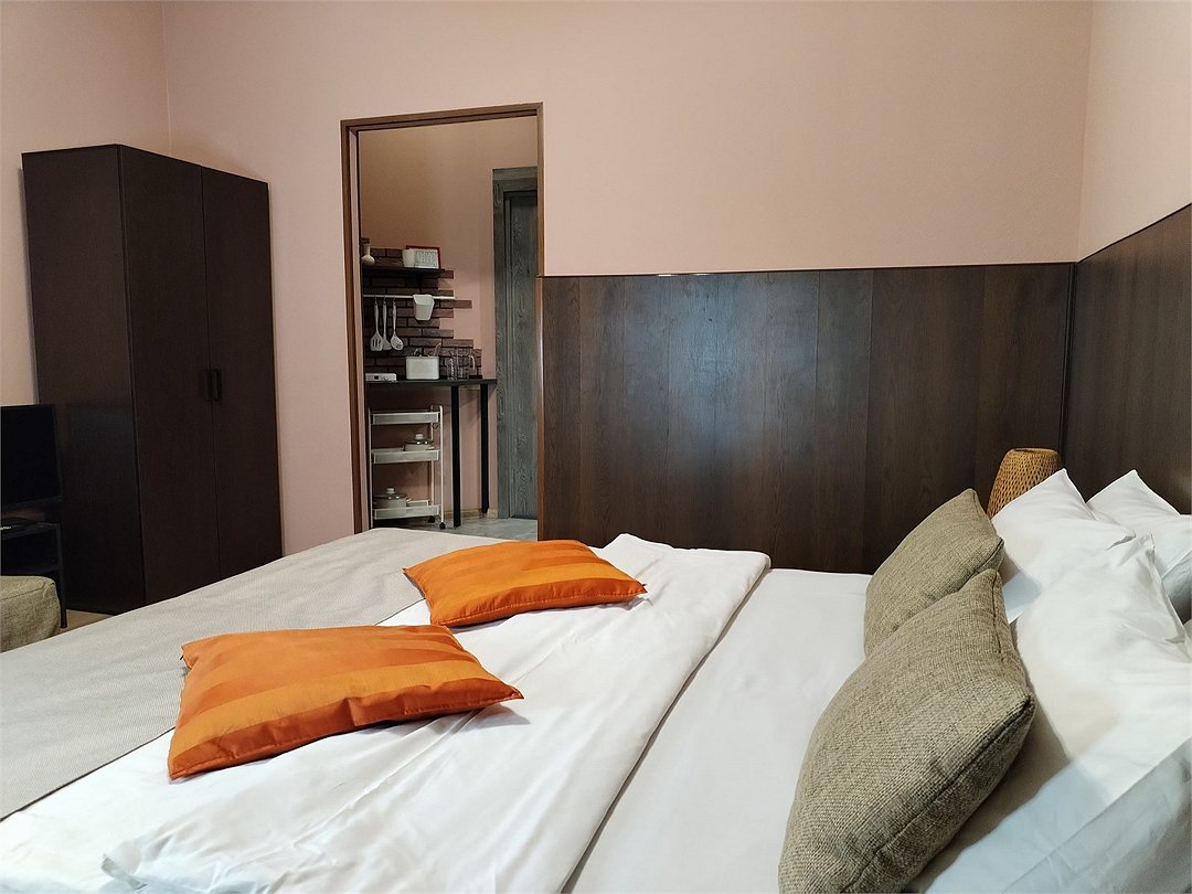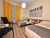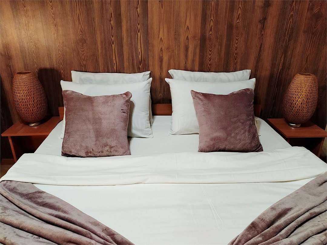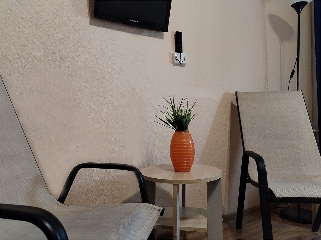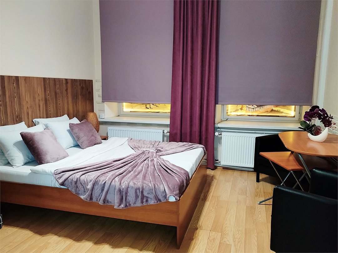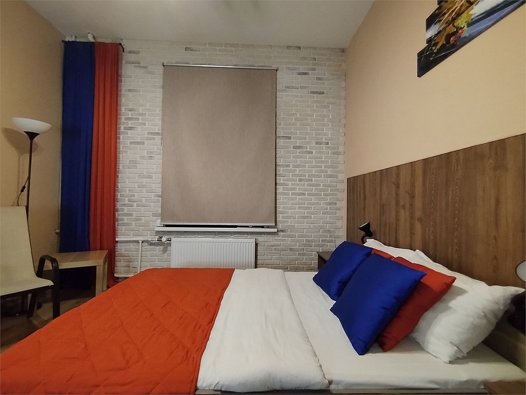 Просторная комната, оформленная в теплых тонах. Размещение от 1 до 3 человек. Возможно еще один ребенок без предоставления отдельного места. Имеется собственная ванная комната и мини-кухня. Гости могут пользоваться стиральной машиной, гладильным принадлежностями, аптечкой, которые находятся в общей зоне.Услуги и удобства