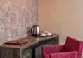 Отель декорирован в стиле начала XX века, под данный стиль подбиралась мебель, расцветка текстиля, предметы интерьера, картины. Общее количество жилых помещений 54. Номера предлагают блочные, с одной уборной на несколько помещений, и индивидуальные на 2 персоны.