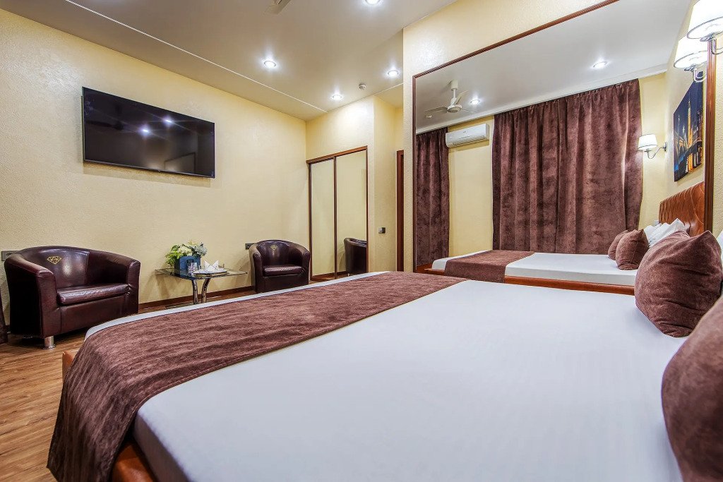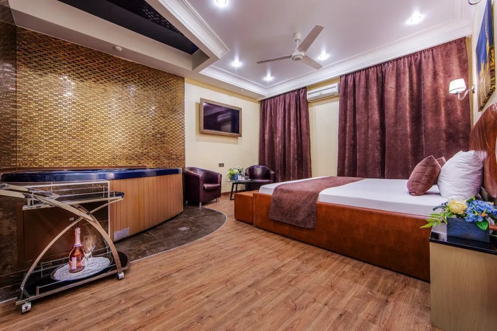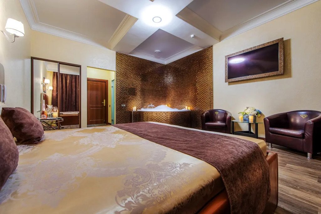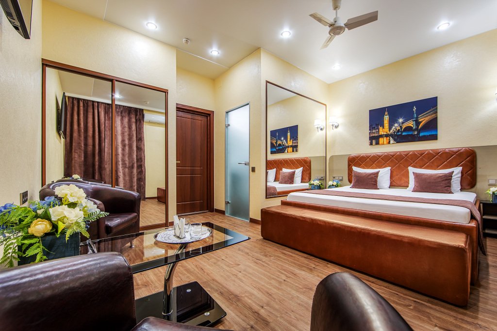 В каждом номере есть отдельная ванная комната, кровати «king-size». Номера оснащены: кондиционерами, телевизором со спутниковыми каналами, телефоном. В ванной комнате с душем предоставляются бесплатные туалетно-косметические принадлежности и фен. Кроме того, в номере имеются халаты и тапочки.