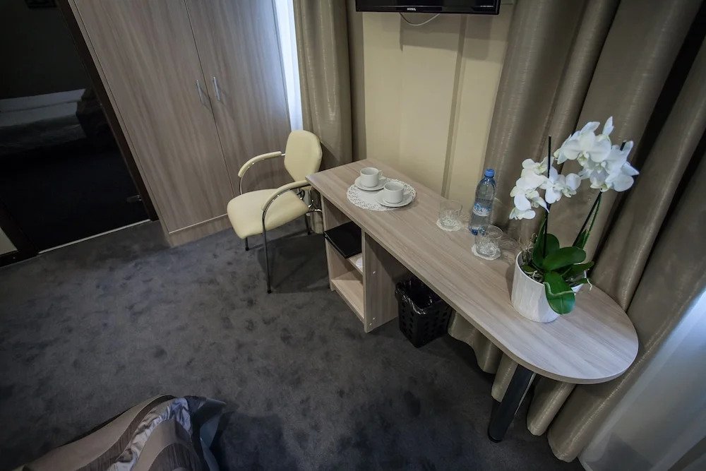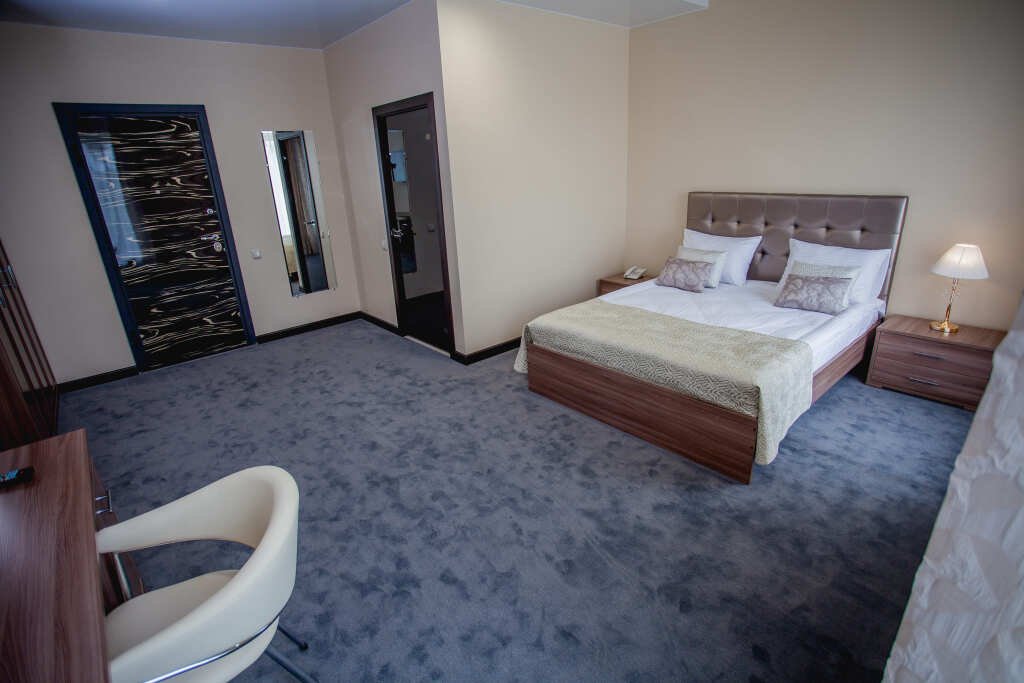 Отель оснащен номерами с саунами. В отеле есть собственная парковка, собственное кафе «Шале», где подают завтраки и бизнес-ланчи.