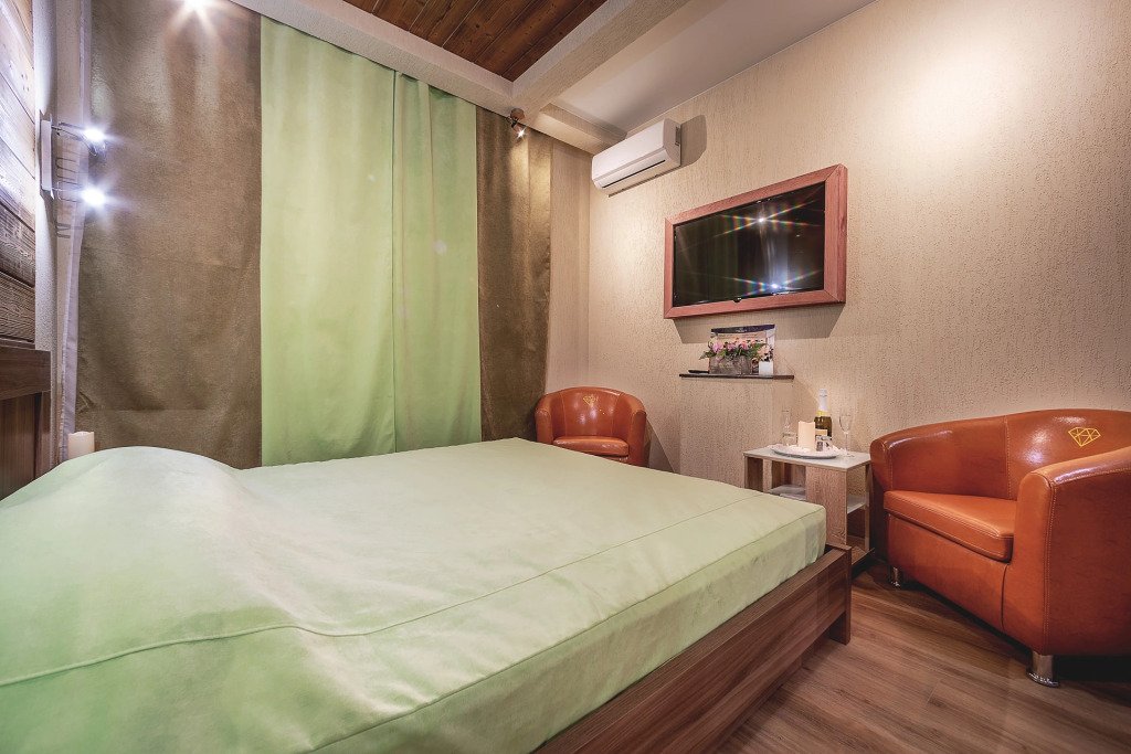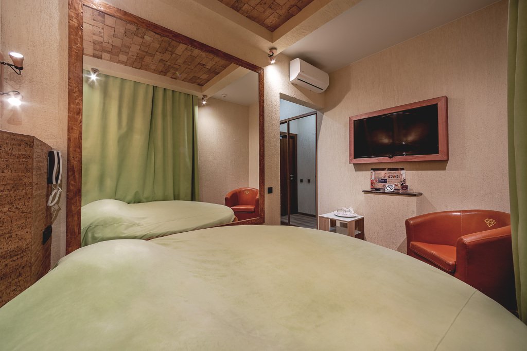 Номера оборудованы всем необходимым для отдыха. В каждом номере есть отдельная ванная комната, кровати «king-size». Номера оснащены: кондиционерами, телевизором со