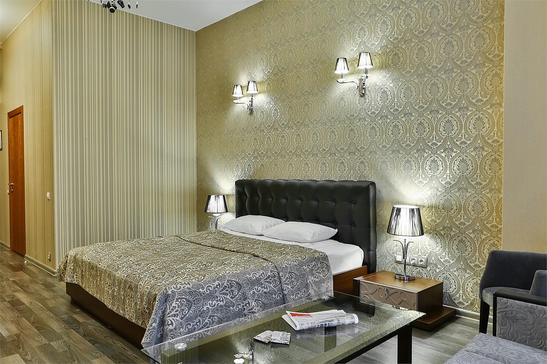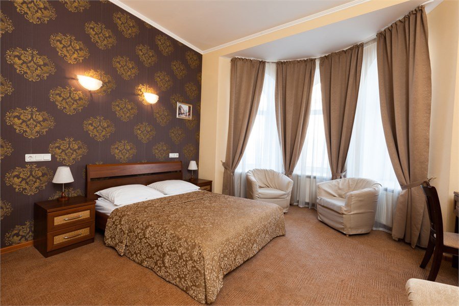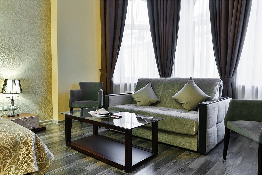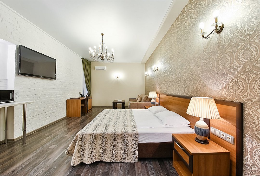 • Просторная, дизайнерская комната, 30 кв. м • Рабочий уголок • 1 большая кровать / 2 раздельные кровати • Дополнительная мягкая мебель • Раскладывающийся диван/кресло • Мини-холодильник • Плазменный ТВ, • Сейф • Просторная ванная комната • Тапочки, халаты • Фен • Вид на Лиговский проспект / внутренний двор • WiFiУслуги и удобства
