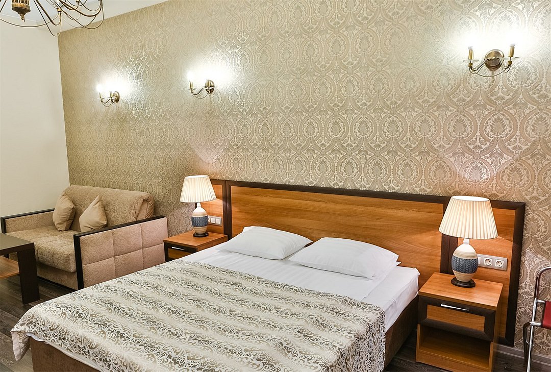 • Уютная, просторная комната, 25 кв. м • 1 большая кровать / 2 раздельные кровати • Рабочий стол, стул • Раскладывающийся диван/кресло • Кондиционер • Мини-холодильник • Плазменный ТВ, телефон • Сейф • Душевая кабина • Тапочки, халаты • Фен • Вид на Лиговский проспект / внутренний двор • WiFiУслуги и удобства