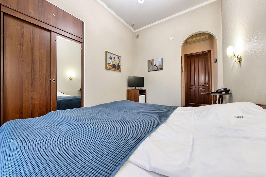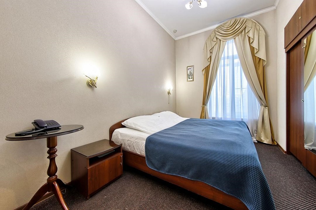 Эта комфортабельная комната оформлена в классическом стиле. В ней есть все необходимое для комфортного пребывания: мини-бар, LCD — телевизор, кондиционер, санузел с душевой кабиной. Окна выходят в тихий внутренний дворик. Имеются также комнаты, из окон которых открывается вид на Невский проспект . Возможно размещение как на двуспальной кровати, так и на двух раздельных кроватях. Бесплатный Wi-Fi предоставляется во всех комнатах.Услуги и удобства