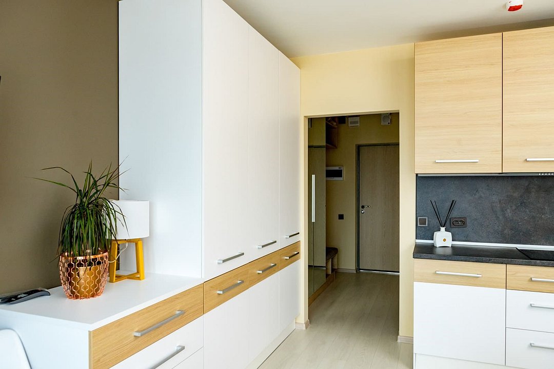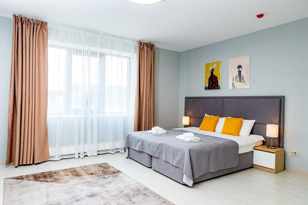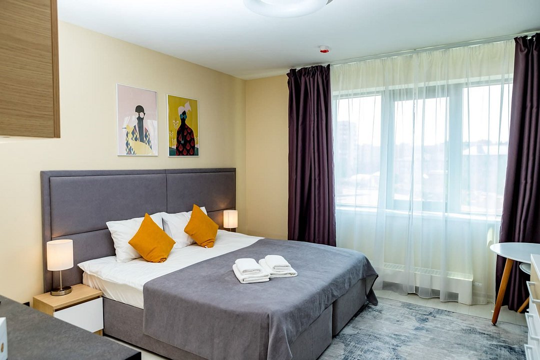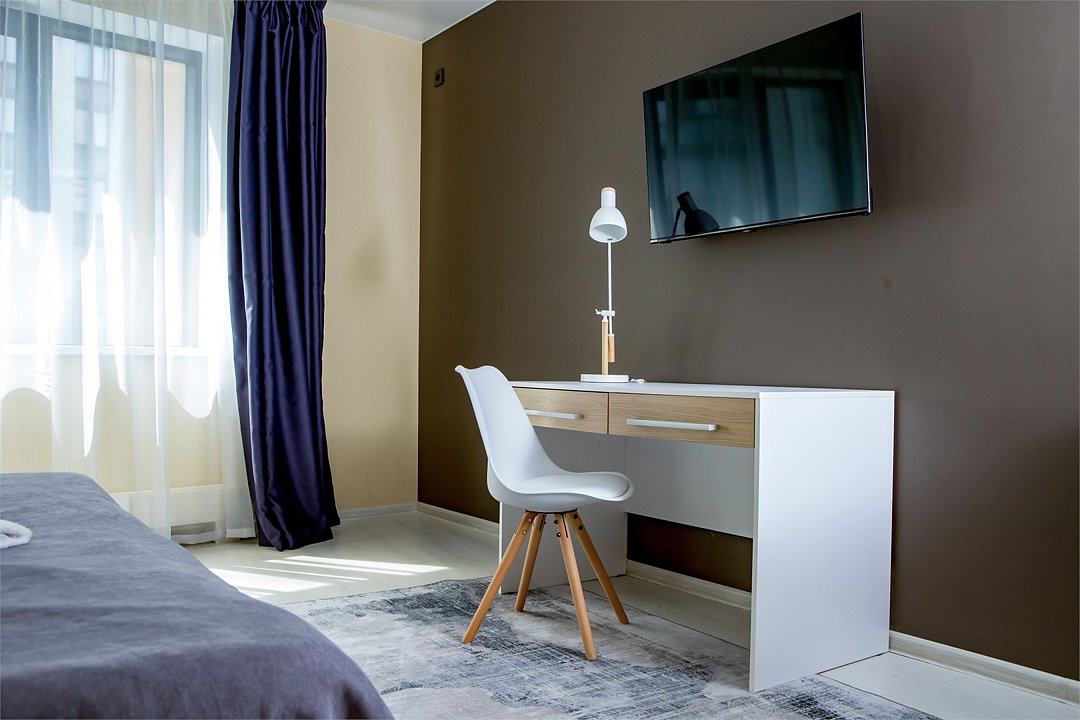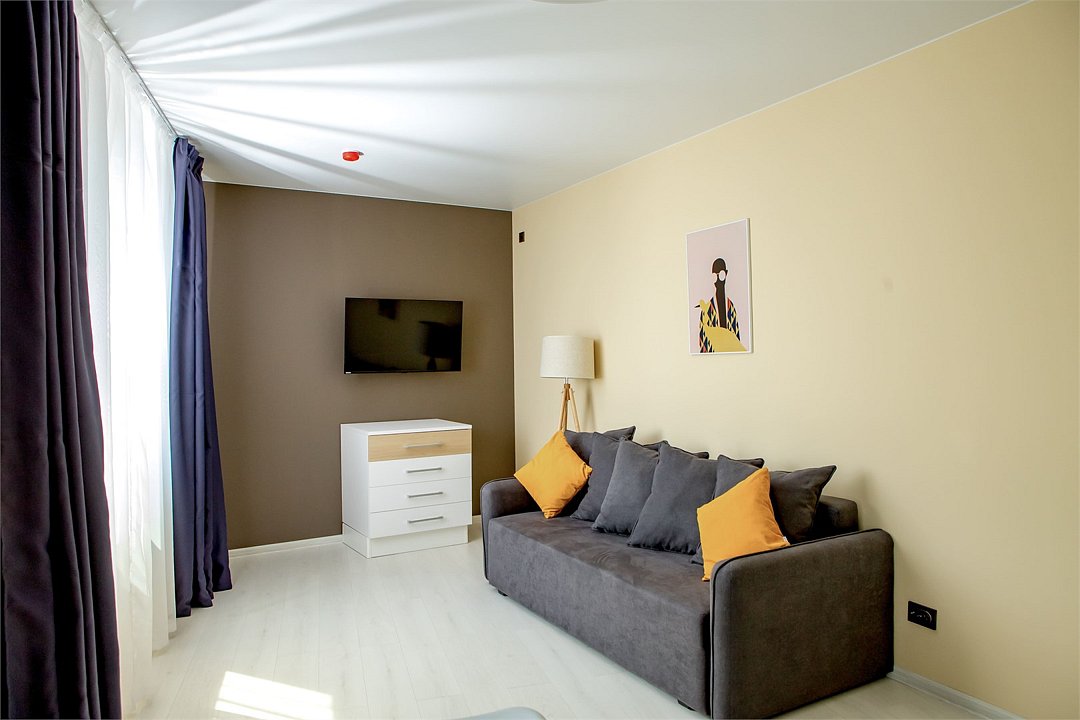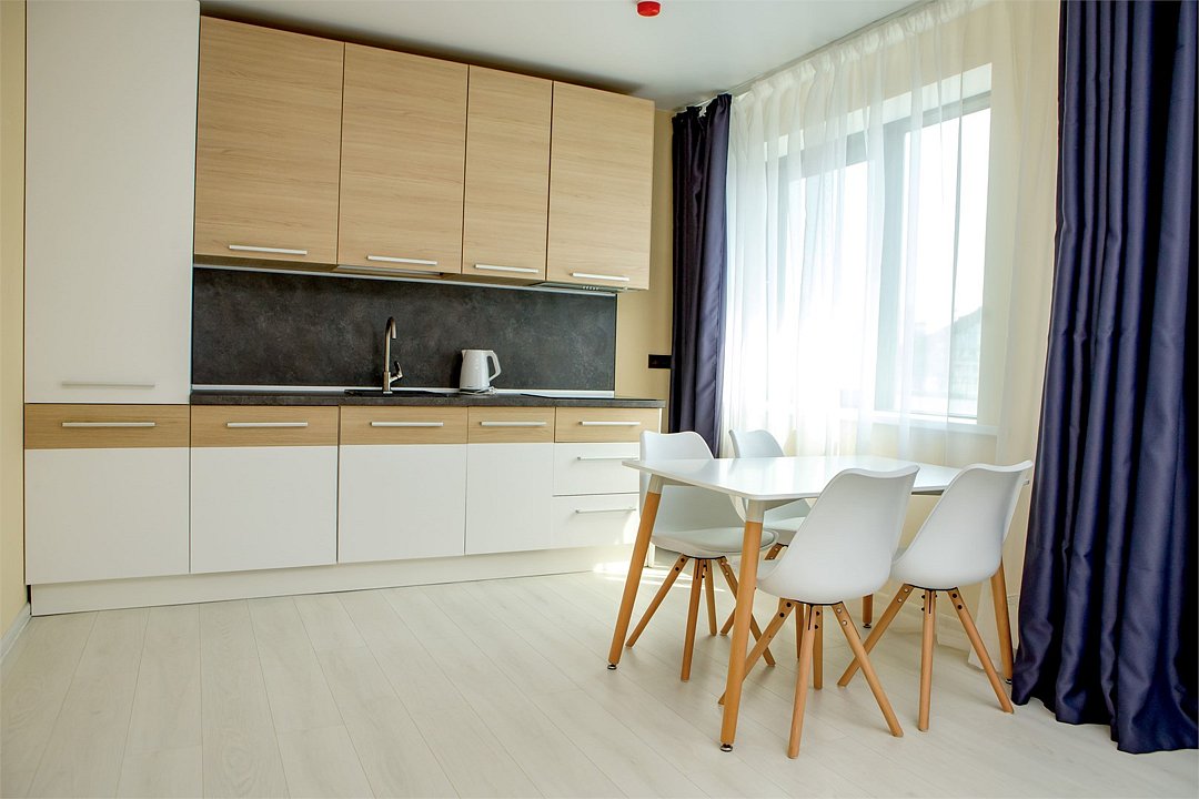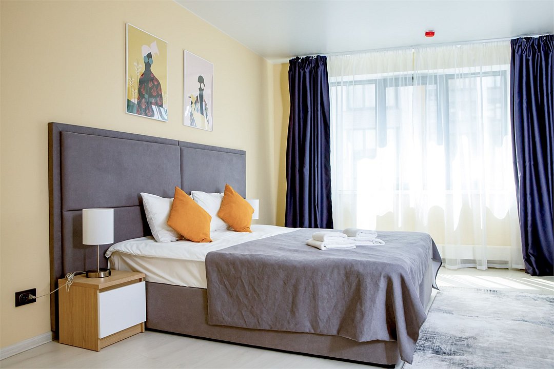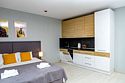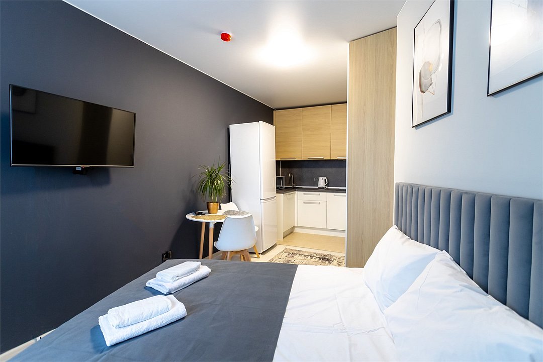 Более просторная уютная студия для 1-2 гостей со всем необходимым для комфортного проживания. Вся комнатная мебель, кровать double или twin (по вашему запросу), кухня в комплектации. Так же для удобства гостей имеются: стиральная машинка, посудомоечная машинка, фен, утюг, гладильная станция, сушилка для одежды. Гигиенические принадлежности в индивидуальной упаковке (шампунь, гель для душа, мыло, зубной набор, тапочки)Услуги и удобства