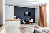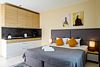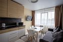 Просторная, уютная студия для 1-2 гостей со всем необходимым для комфортного проживания. Вся комнатная мебель, кровать двуспальная или две односпальных (по вашему запросу), кухня в комплектации. Так же для удобства гостей имеются: стиральная машинка, посудомоечная машинка, фен, утюг, гладильная станция, сушилка для одежды. Гигиенические принадлежности в индивидуальной упаковке (шампунь, гель для душа, мыло, зубной набор, тапочки)Услуги и удобства