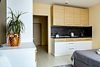 Уютная небольшая студия для 1-2 гостей со всем необходимым для комфортного проживания. Вся комнатная мебель, двуспальная кровать, кухня в комплектации. Так же для удобства гостей имеются: кондиционер, бойлер, стиральная машинка, посудомоечная машинка, фен, утюг, гладильная станция, сушилка для одежды. Гигиенические принадлежности в индивидуальной упаковке (шампунь, гель для душа, мыло, зубной набор, тапочки)Услуги и удобства